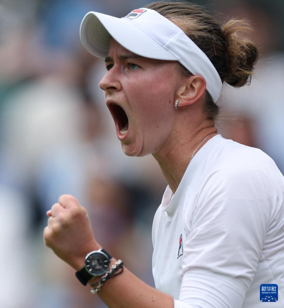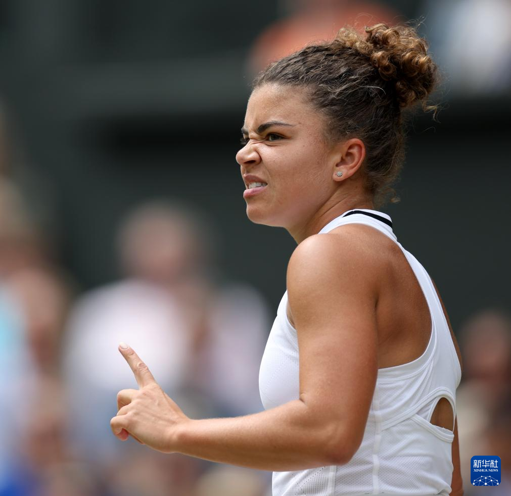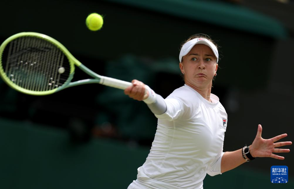 当日,在英国伦敦举行的2024温布尔登网球公开赛女单决赛中,意大利选手保利尼对阵捷克选手克赖奇科娃。新华社记者 李颖 摄