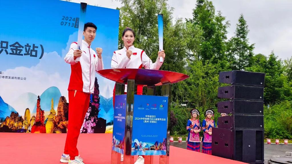 新华网贵阳7月14日电(记者骆飞)“中华益动行”2024中华体育文化公益宣传活动(贵州·织金站)日前举行。包括奥运冠军在内的共计16名火炬手参加了全民健身火炬传递活动,他们手擎火炬穿行在织金古城,迅速点燃这里的全民健身热情。
