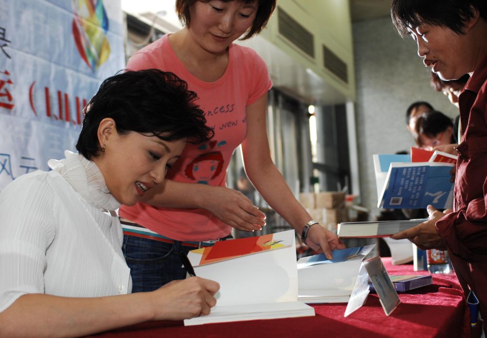 2008年9月28日,杨澜在北京图书大厦参加《杨澜访谈录之东方看奥运》图书签售活动,与读者分享她在报道北京奥运会过程中接触到的动人故事。 新华社记者 尹栋逊 摄