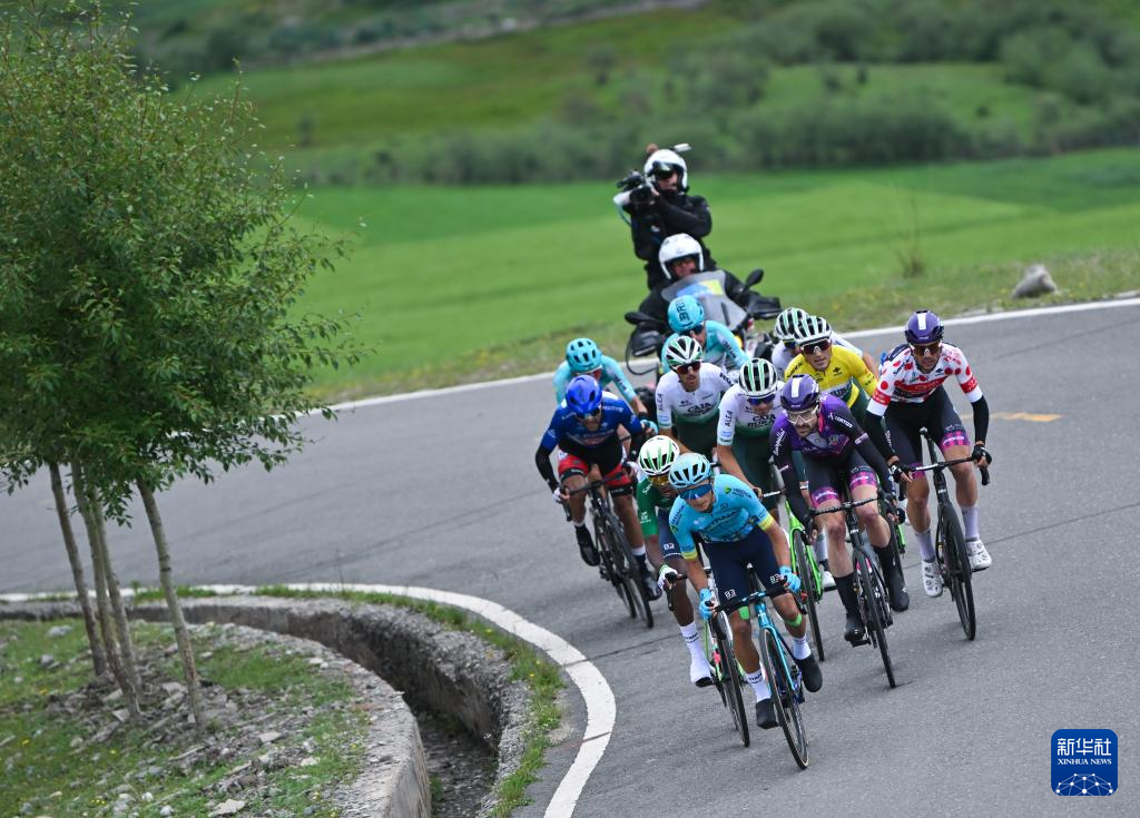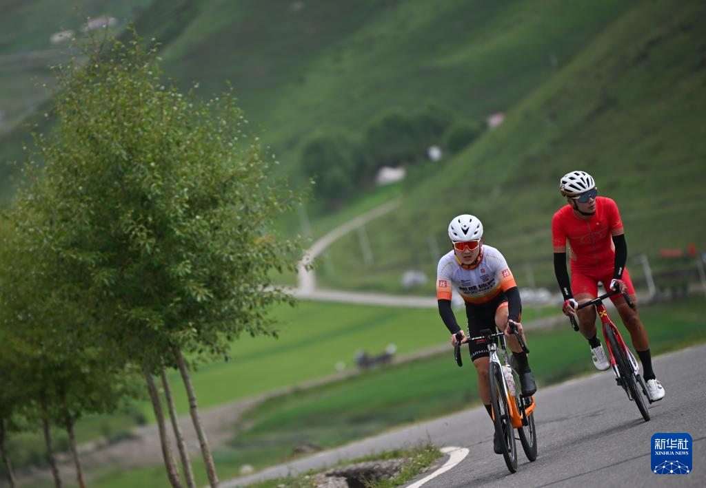 7月14日,参赛车手在比赛中骑行。新华社记者 张龙 摄