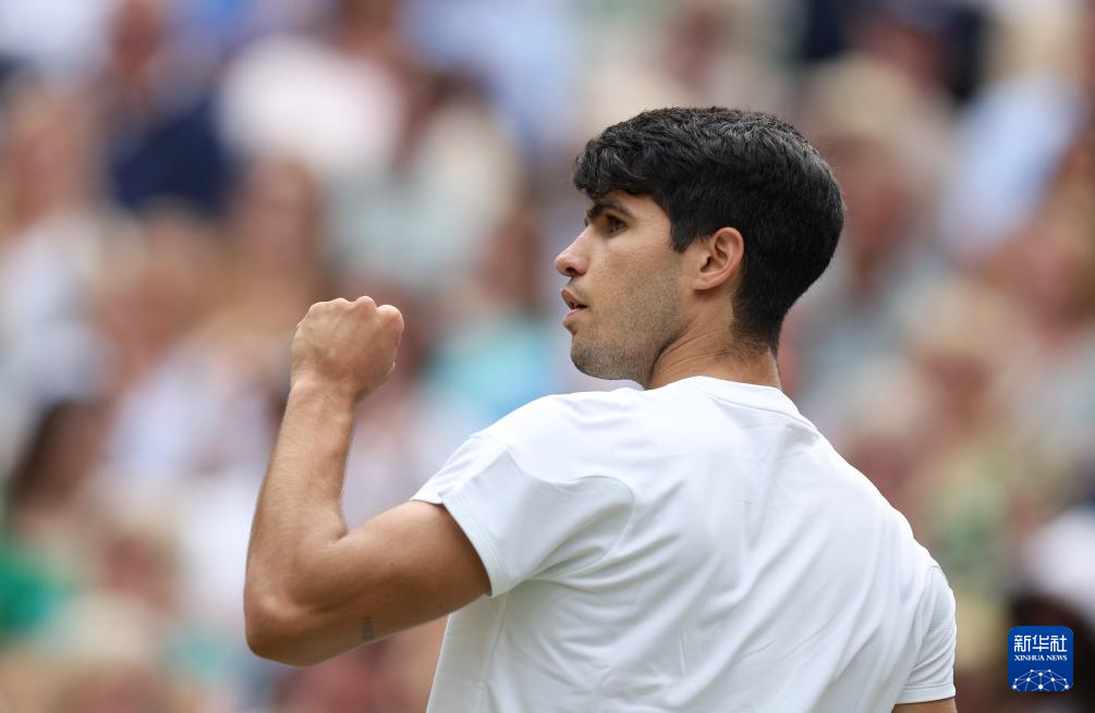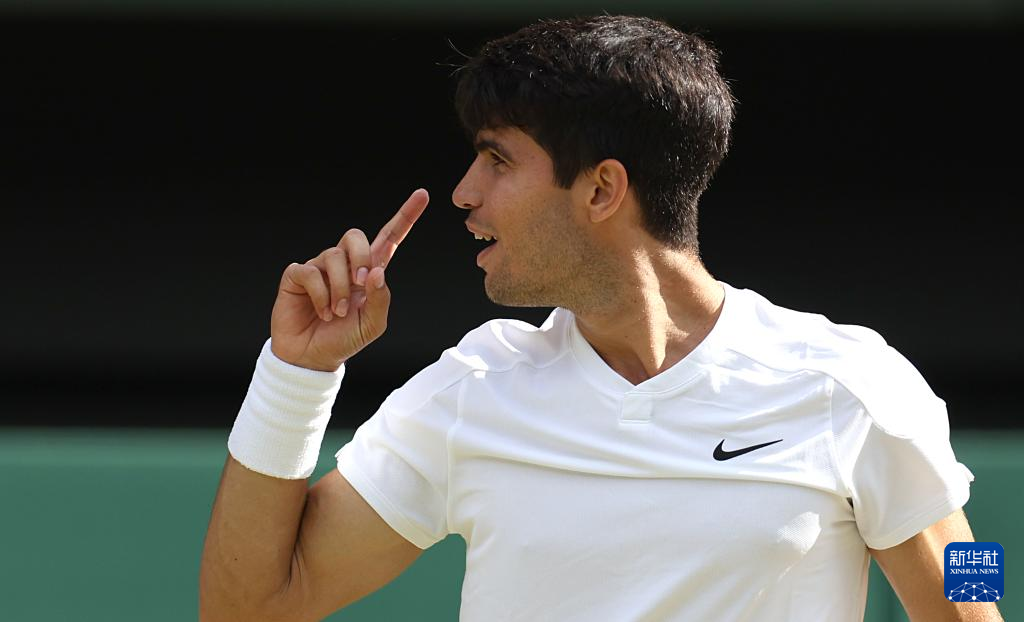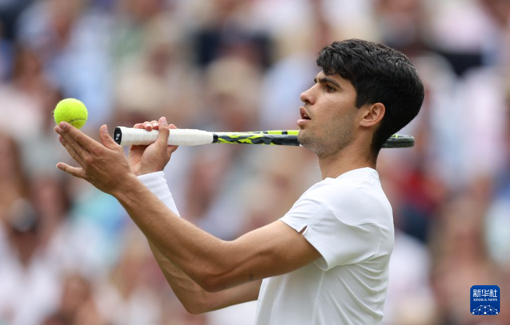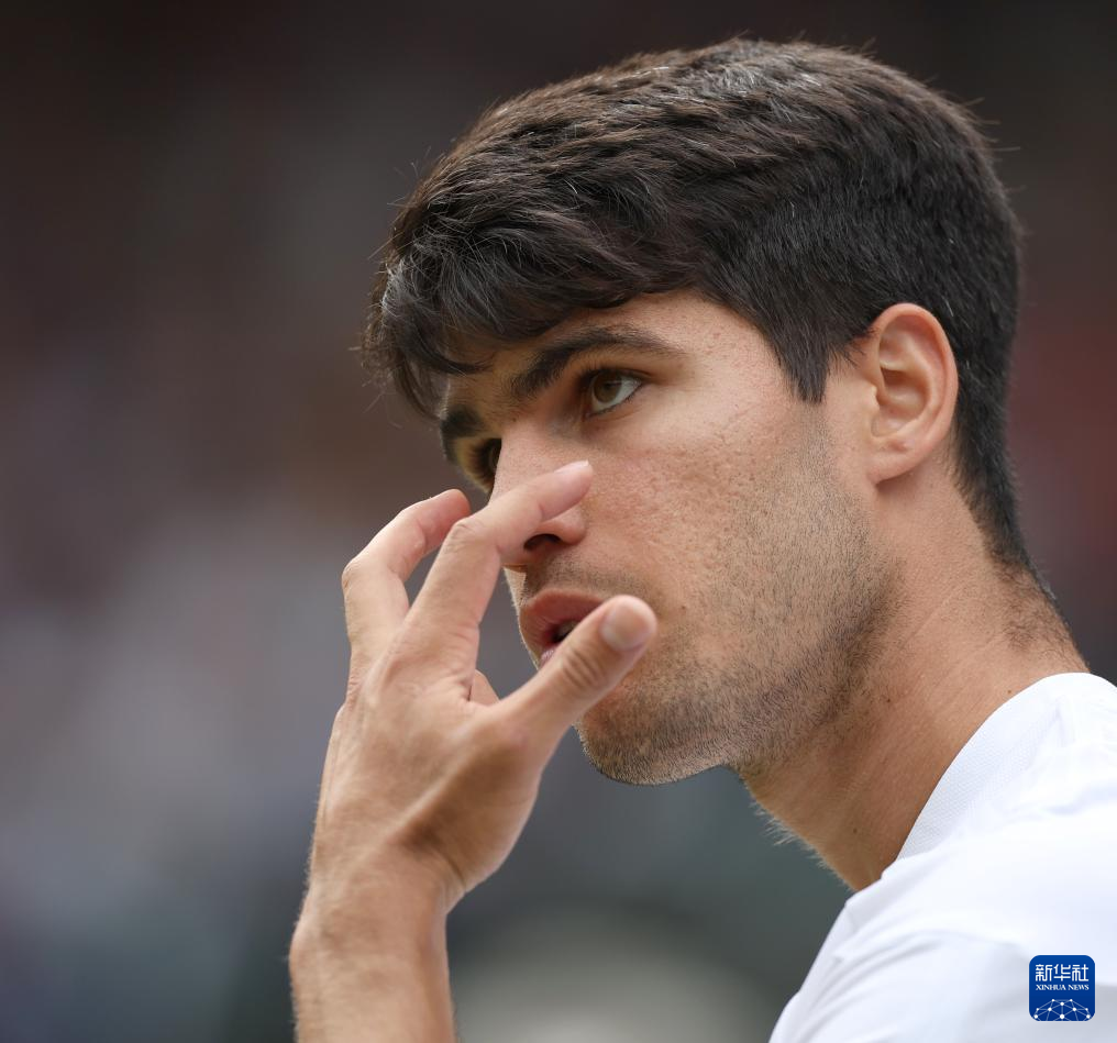 7月14日,阿尔卡拉斯在比赛中。新华社记者 李颖 摄