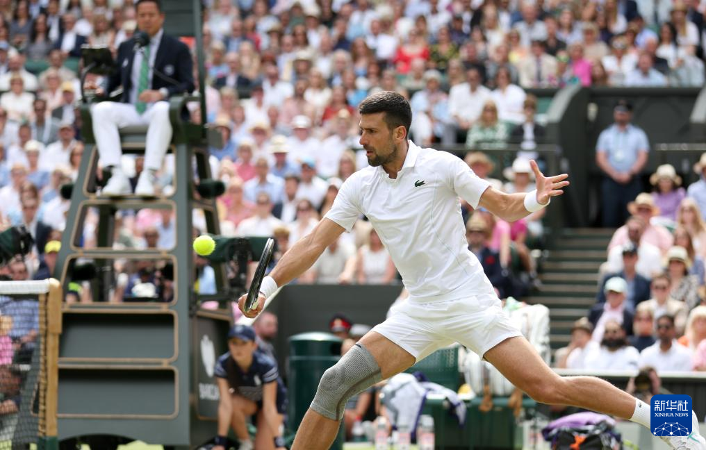 7月14日,焦科维奇在比赛中回球。新华社记者 李颖 摄