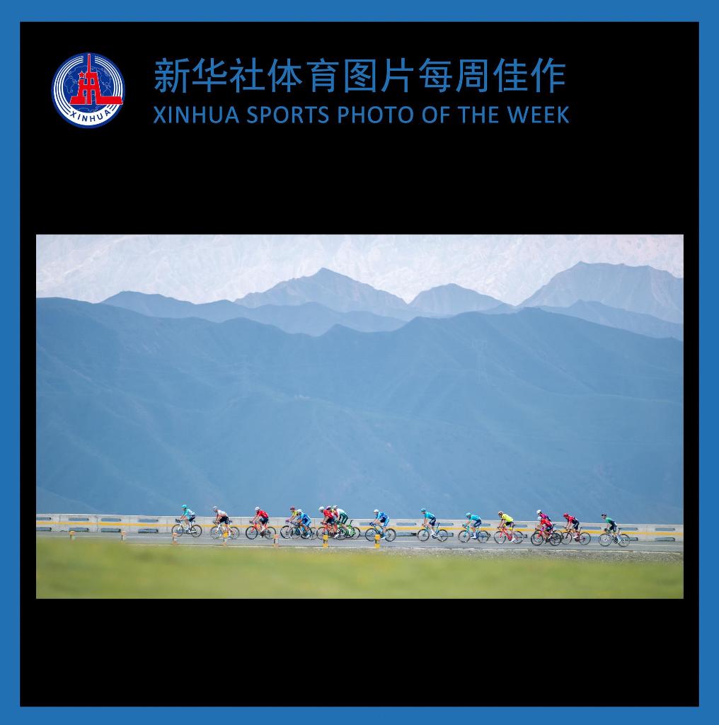 7月10日,参赛车手在比赛中骑行。当日,第二十三届环青海湖国际公路自行车赛进行第四赛段贵德至共和的角逐。