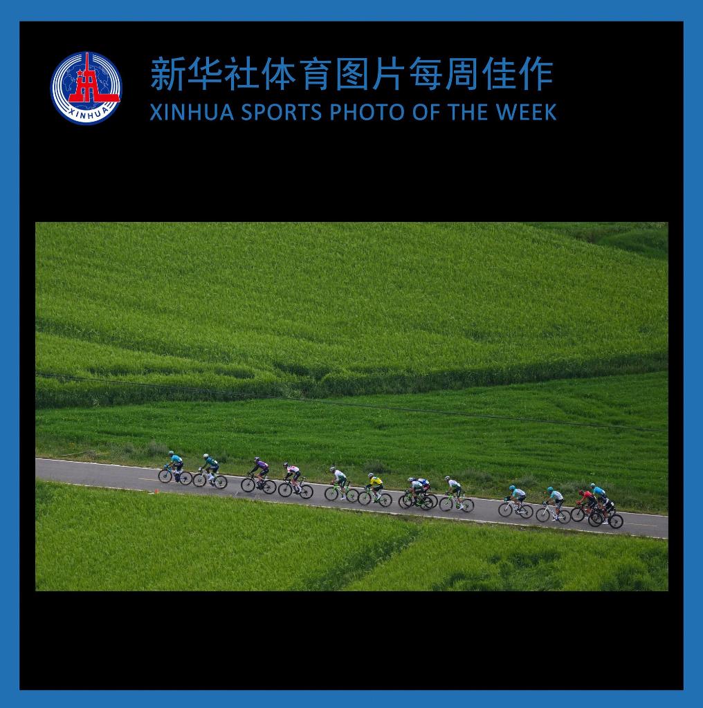 7月14日,参赛车手在比赛中骑行。当日,第二十三届环青海湖国际公路自行车赛进行第八赛段门源花海赛段的角逐,这也是本届环青海湖国际公路自行车赛的最后一个赛段。