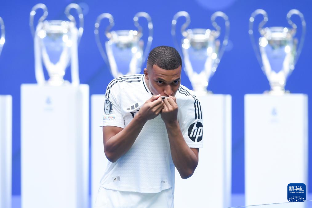 当日,法国足球运动员姆巴佩与西甲皇家马德里俱乐部正式签约,并身披皇马球衣亮相伯纳乌球场。随后,姆巴佩出席加盟皇马后的首次新闻发布会。