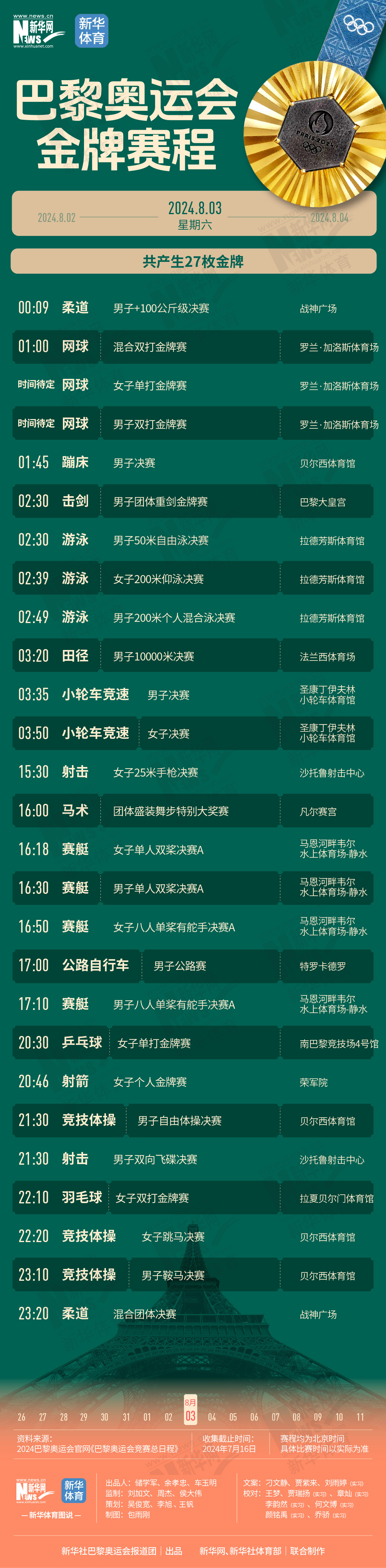 2024年巴黎奥运会即将拉开序幕,运动员已蓄势待发。想要锁定金牌赛事,不错过含“金”量超高的比赛?快收藏这份新华体育为你整理的巴黎奥运会金牌赛程,助你精准观赛!