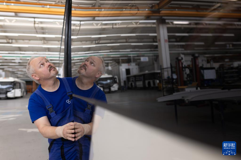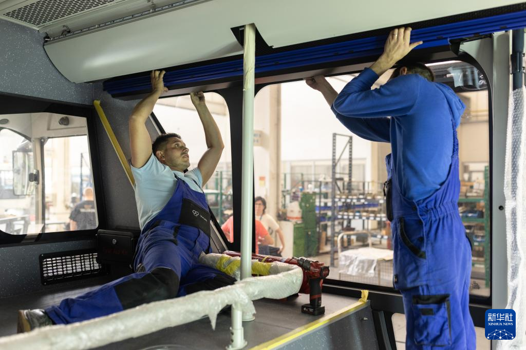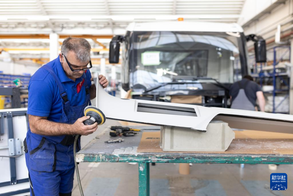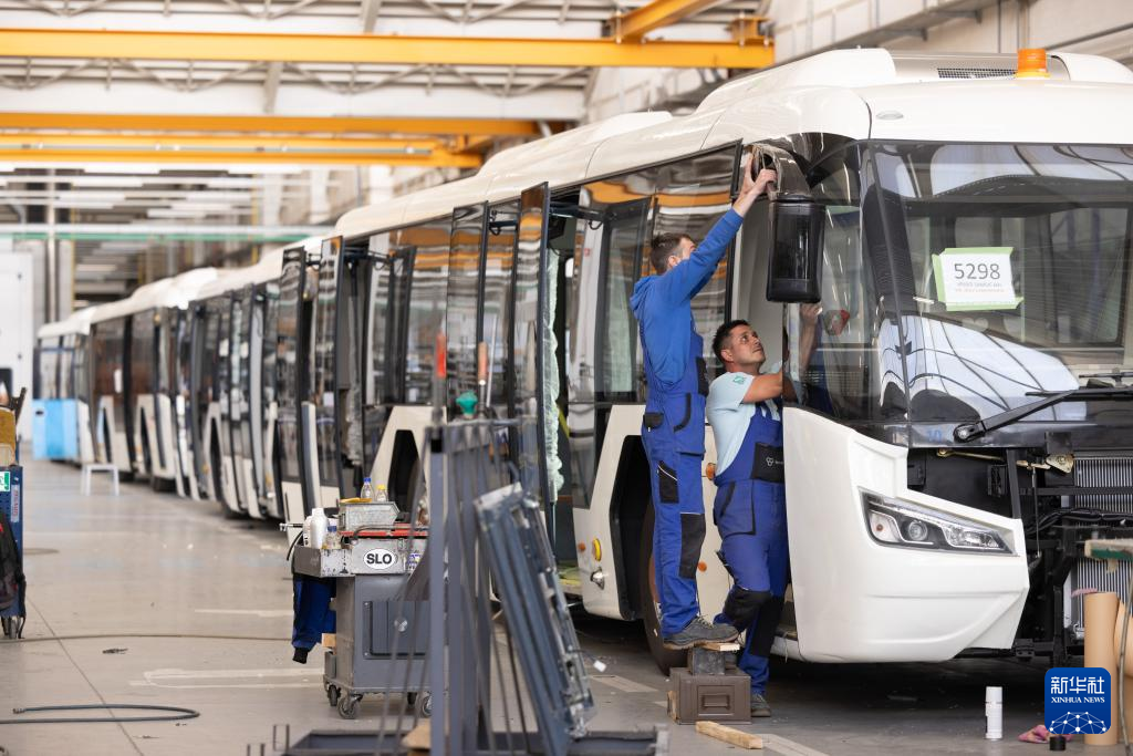 6月14日,在斯洛文尼亚马里博尔郊区的TAM欧洲商用车研发制造公司工厂,工人在电动巴士生产线上工作。新华社发(泽利科·斯特凡尼奇摄)