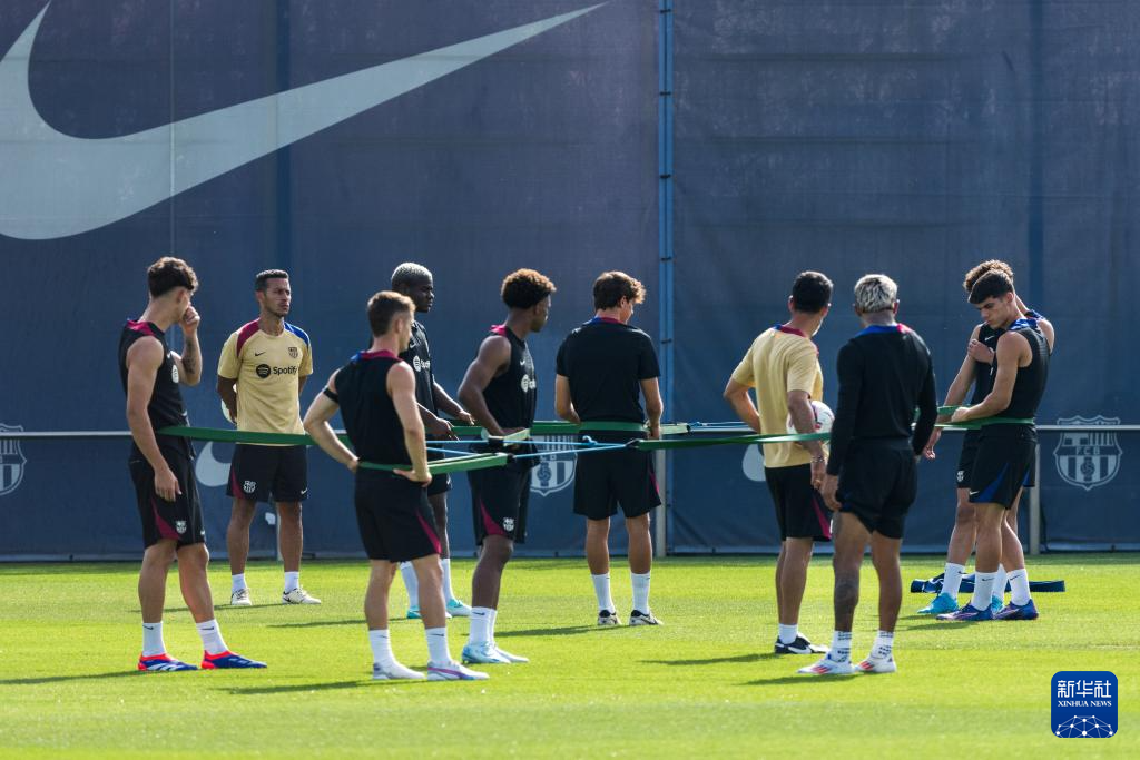 当日,巴塞罗那队在西班牙甘珀体育城举行新主帅上任后首场公开训练,备战即将开始的新赛季。