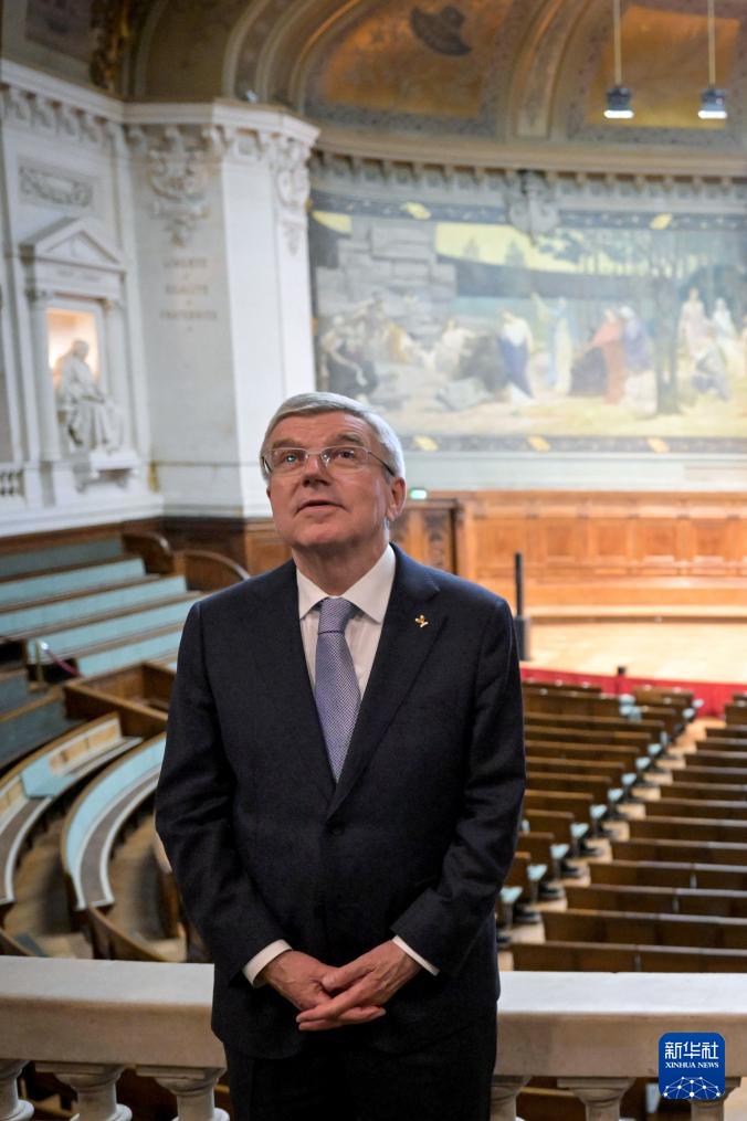 当日,国际奥委会主席巴赫到访巴黎索邦大学。1892年,“现代奥林匹克之父”顾拜旦在此发表演讲,首次公开提出恢复奥运会。1894年6月23日,国际奥委会在此正式成立。