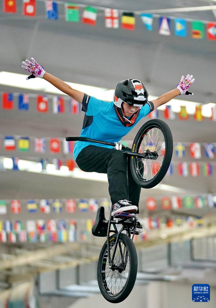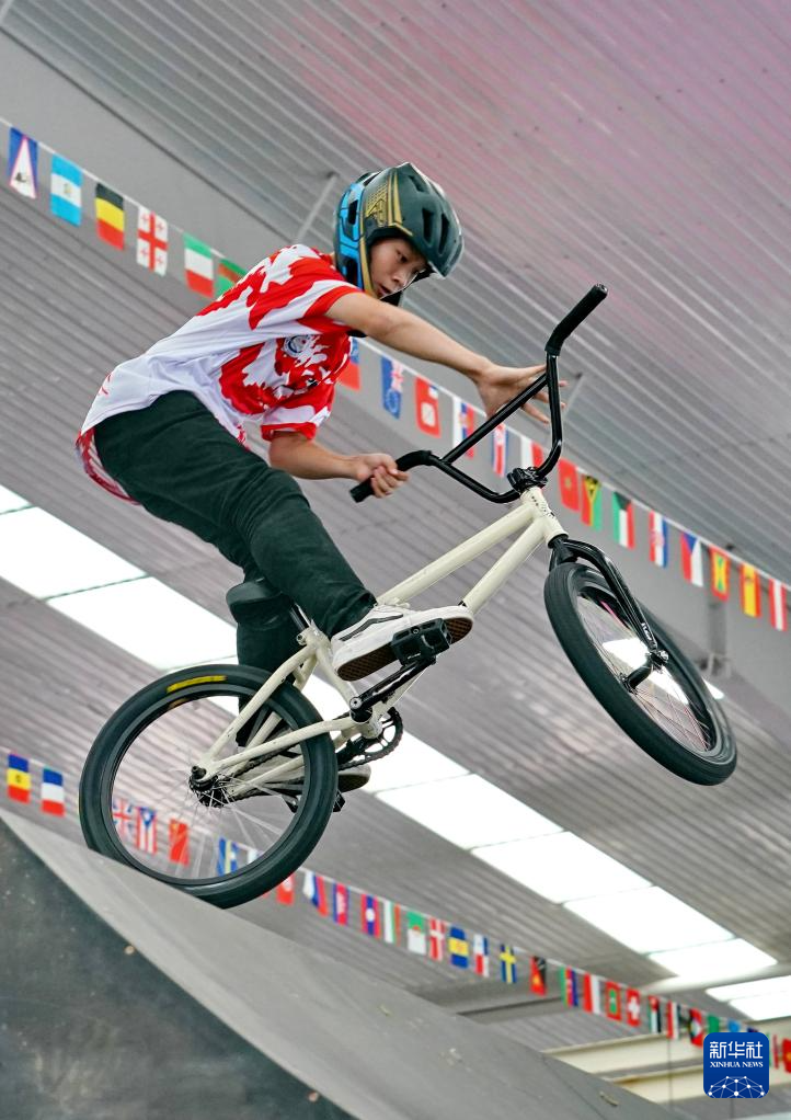 7月20日,河北衡中自行车队选手孟令浩在男子青年组资格赛中。他以66.80分的成绩位列小组第三名。新华社发(李铎摄)