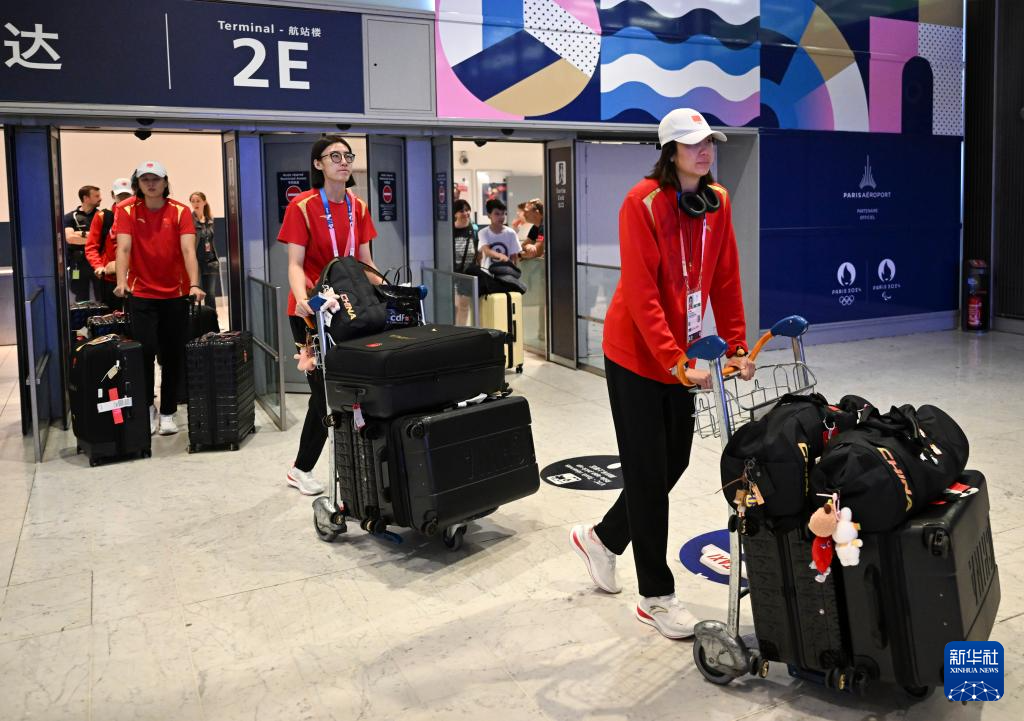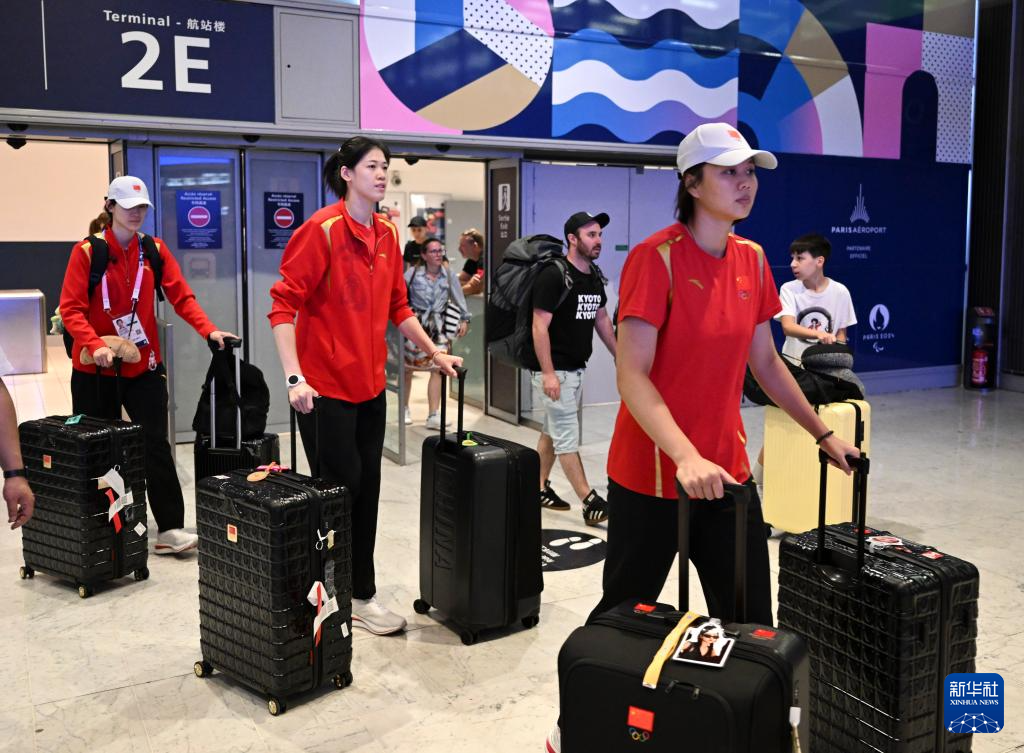7月20日,中国女排队员抵达巴黎戴高乐机场。新华社记者 贺长山 摄