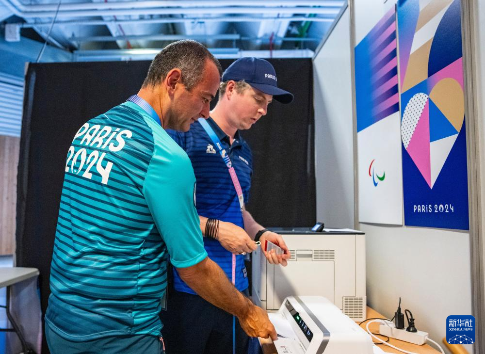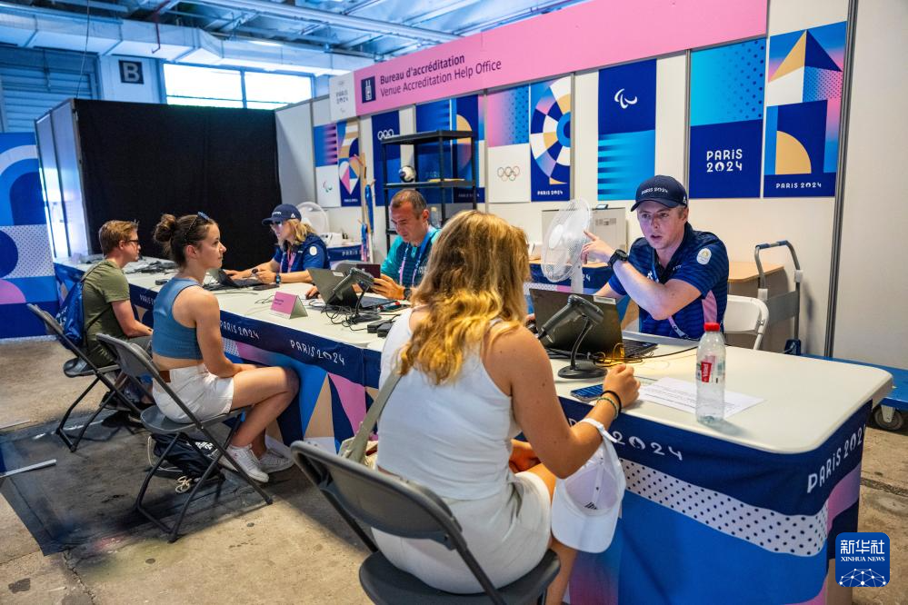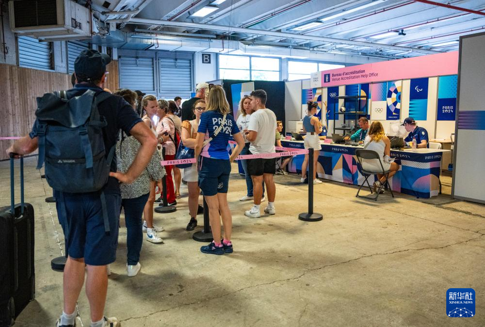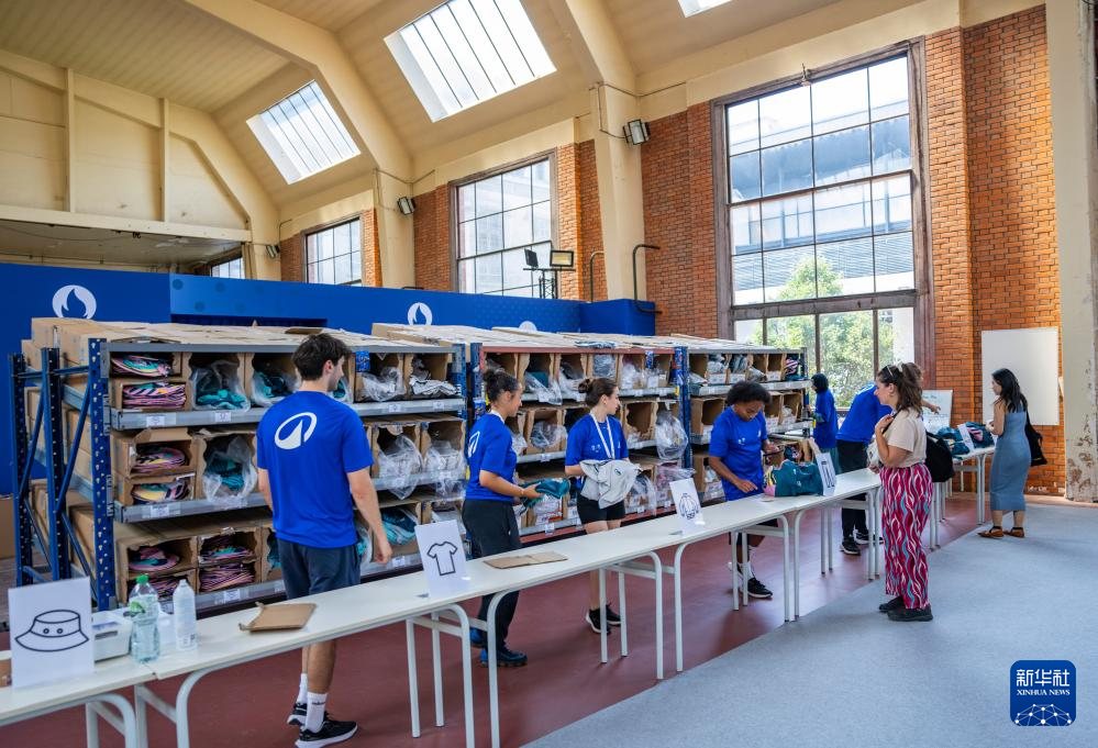 近日,巴黎奥运会志愿者在志愿者装备分发中心领取身份认证卡、服装、公共交通卡等物品。