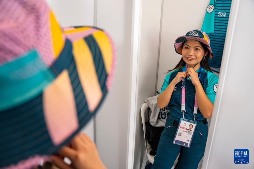 7月19日, 一名来自中国的志愿者在试穿服装。新华社记者 孙非 摄