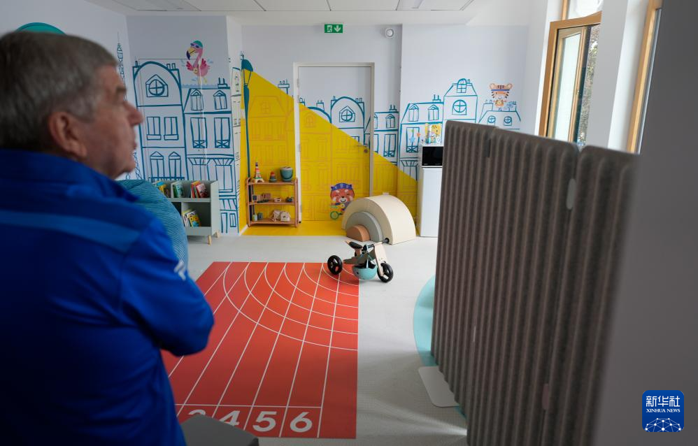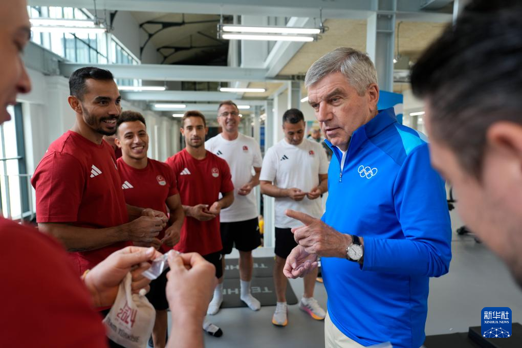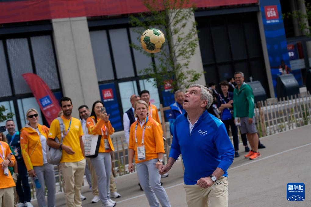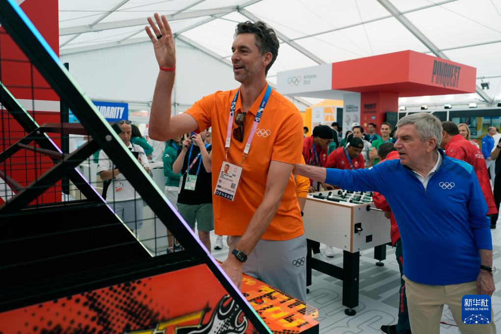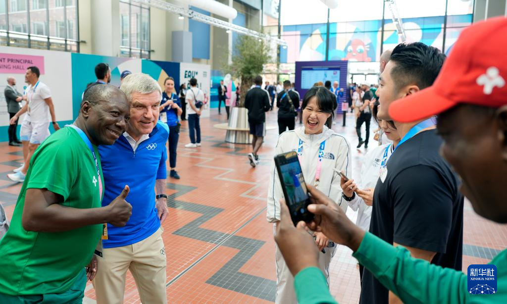 当日,国际奥委会主席巴赫到访巴黎奥运村。