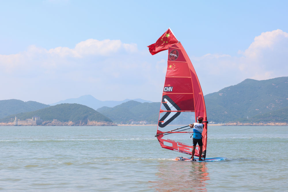 2023年9月23日,杭州亚运会帆船项目男子风筝板比赛在浙江省宁波市象山亚帆中心展开第三日的角逐。新华社记者 张涛 摄