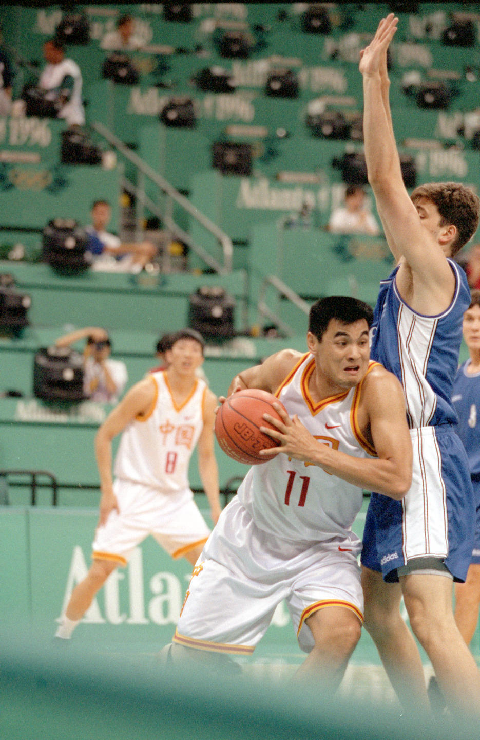 资料图:1996年7月24日,在奥运会男子篮球第一阶段比赛中,中国队以87:77战胜阿根廷队,获得一场关键性的胜利。这是刘玉栋向篮下运球。新华社记者 官天一 摄(传真照片)
