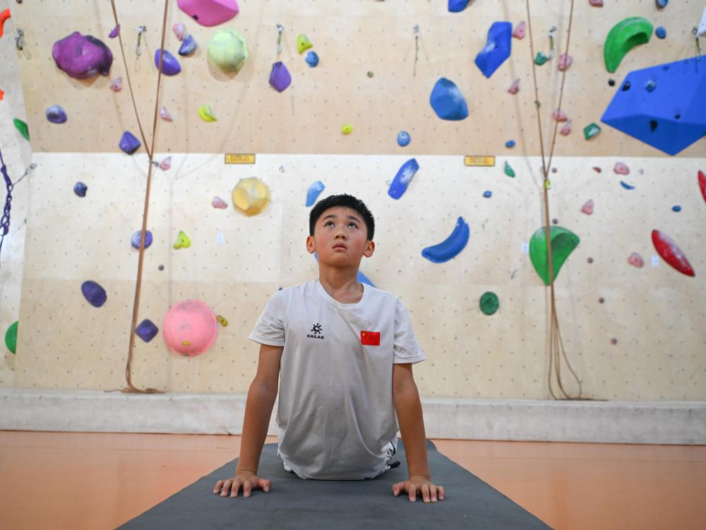 7月16日,方先旻在训练攀岩。新华社记者 王曦 摄