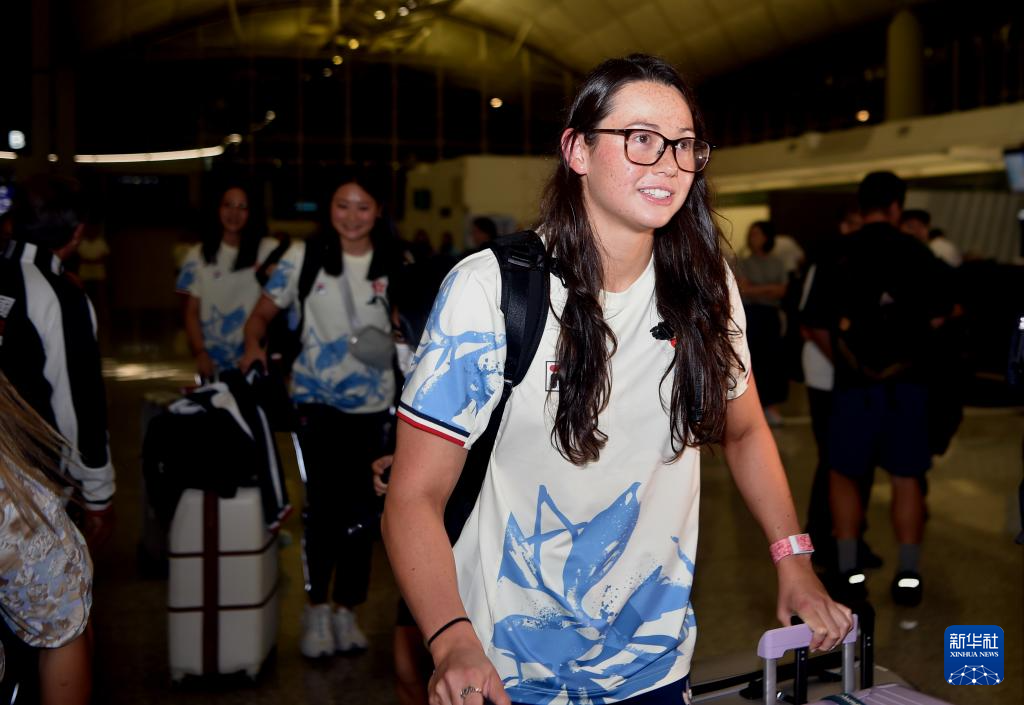 7月22日,中国香港游泳运动员何诗蓓来到机场大厅候机。新华社记者 卢炳辉 摄