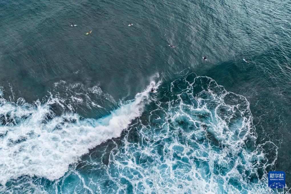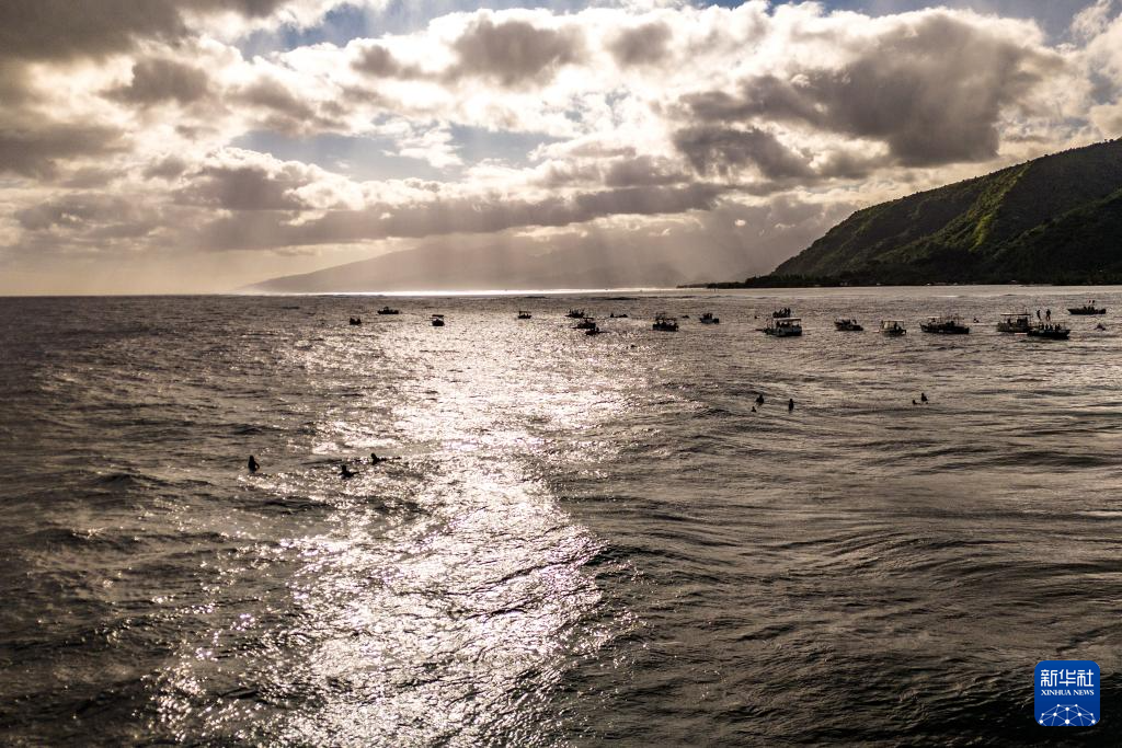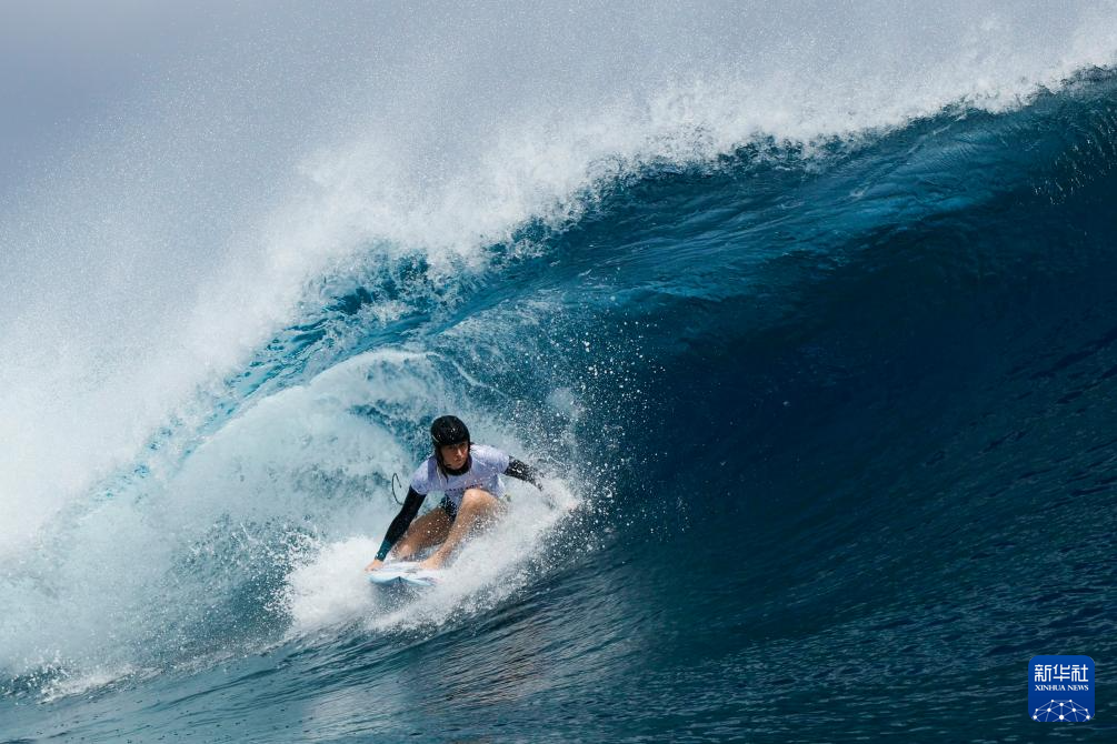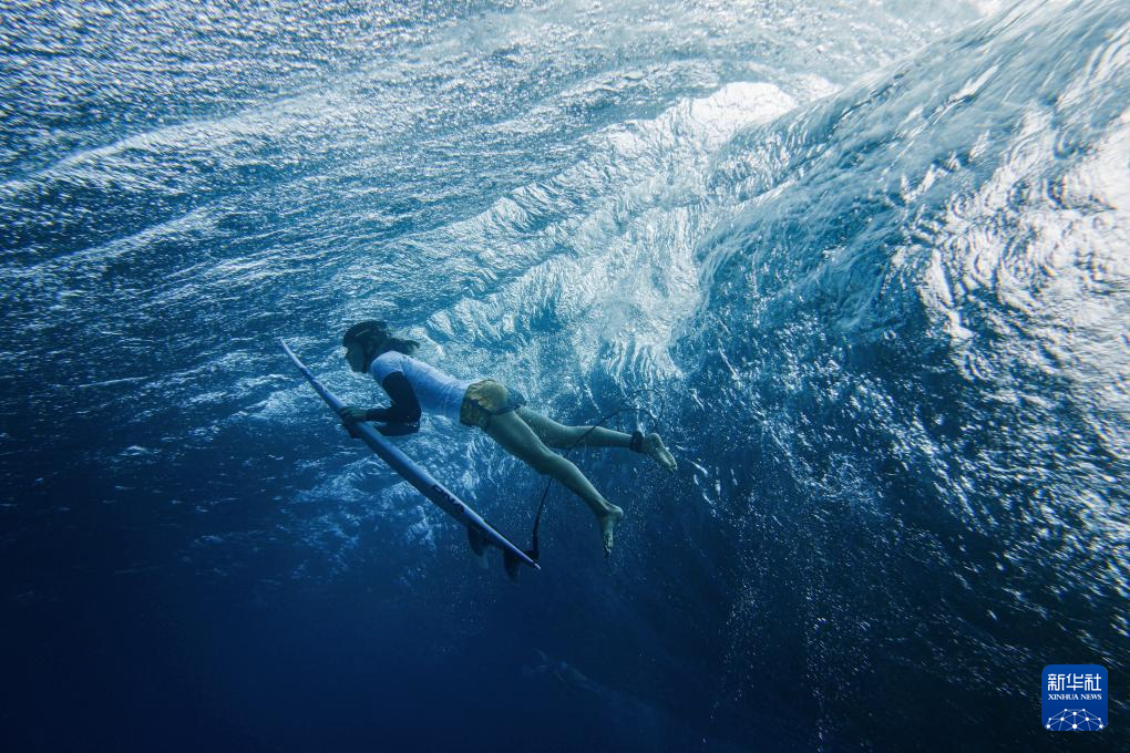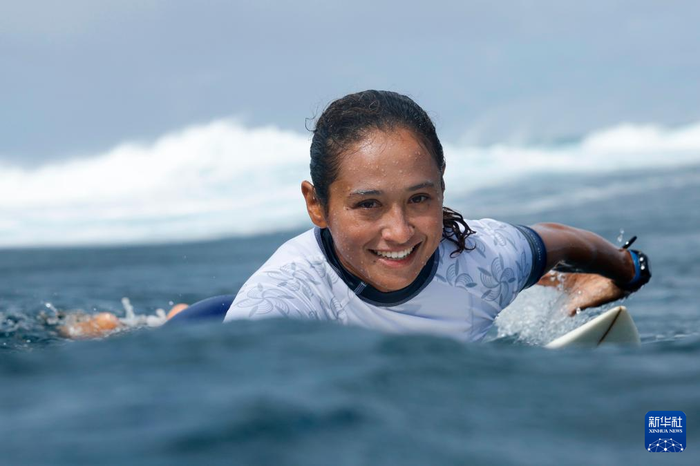 当日,冲浪选手在法属波利尼西亚群岛的塔希提进行训练。巴黎奥运会冲浪项目将于7月27日迎来首个比赛日。