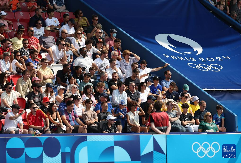 7月24日,西班牙队球员普维尔(右)与队友绍穆在赛后拥抱庆祝。
