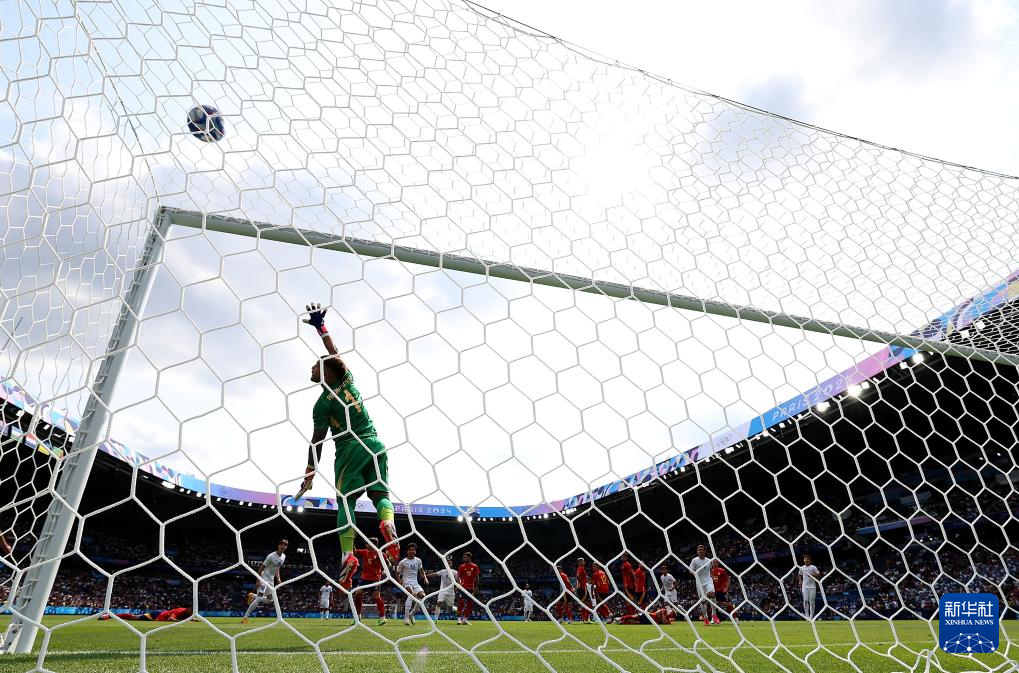 7月24日,西班牙队守门员(前)阿尔瑙·特纳斯在比赛中。