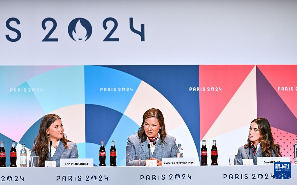 7月24日,美国前速度滑冰运动员凯瑟琳·拉尼·诺曼(中)在发布会上发言。新华社记者 邬惠我 摄