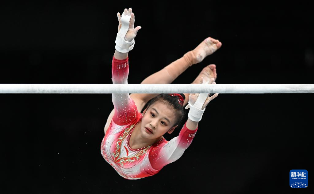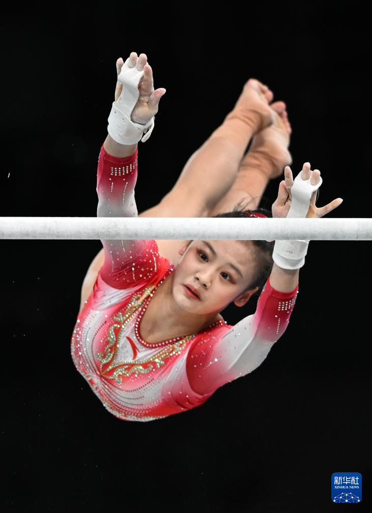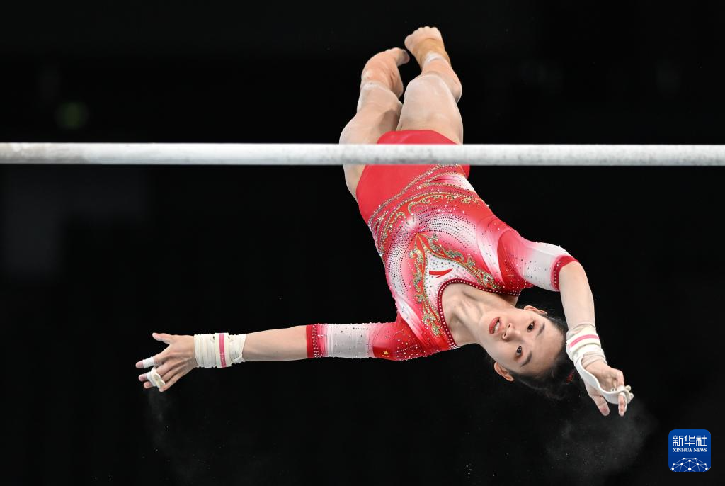 7月25日,中国队选手欧钰珊在高低杠项目训练中。新华社记者 程敏 摄