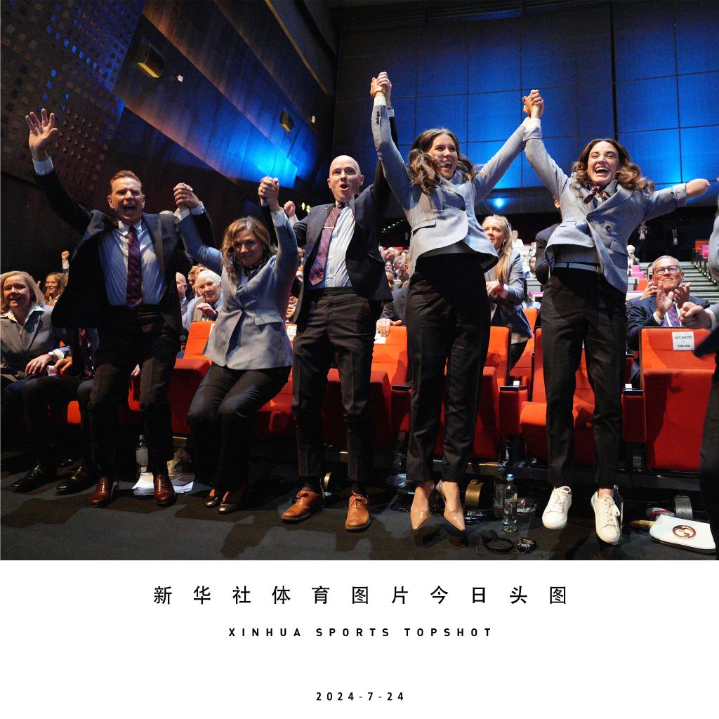 这是美国盐湖城代表团成员庆祝获得2034年冬奥会举办权(7月24日摄)。