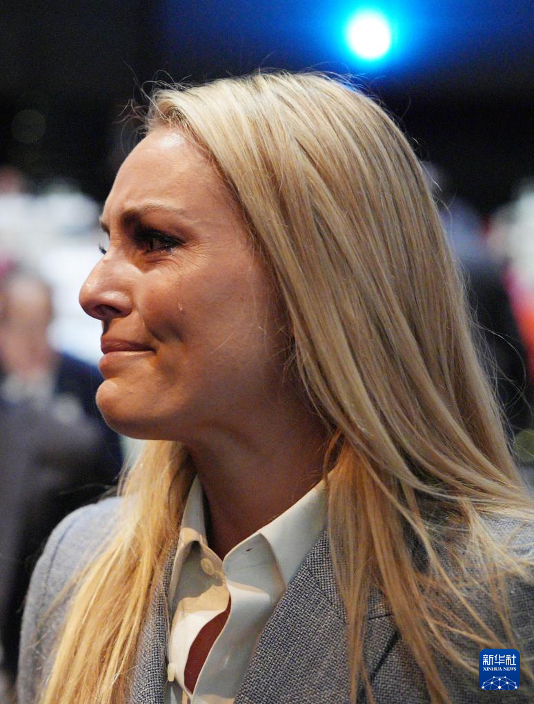 7月24日,美国前高山滑雪运动员林赛·冯恩在盐湖城获得2034年冬奥会举办权后落泪。新华社记者 孙非 摄