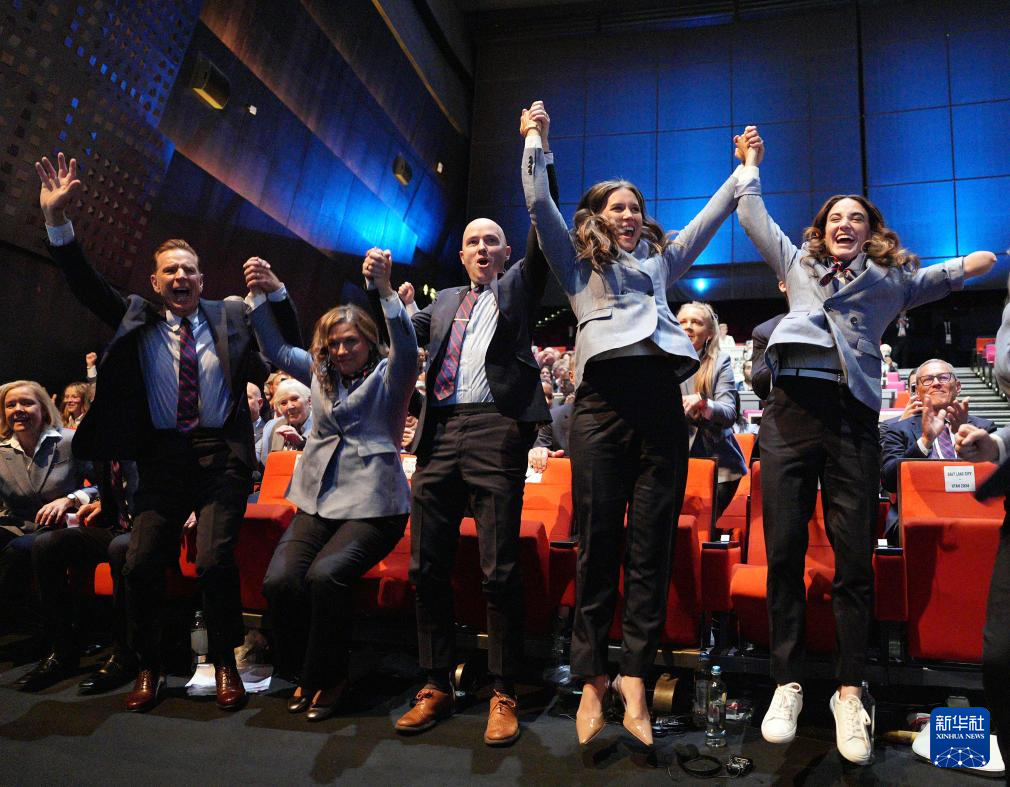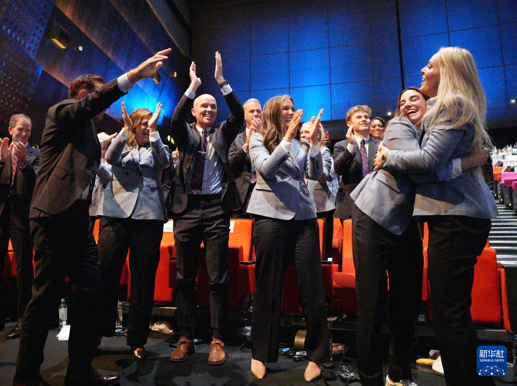 7月24日,美国盐湖城代表团成员庆祝获得2034年冬奥会举办权。新华社记者 孙非 摄