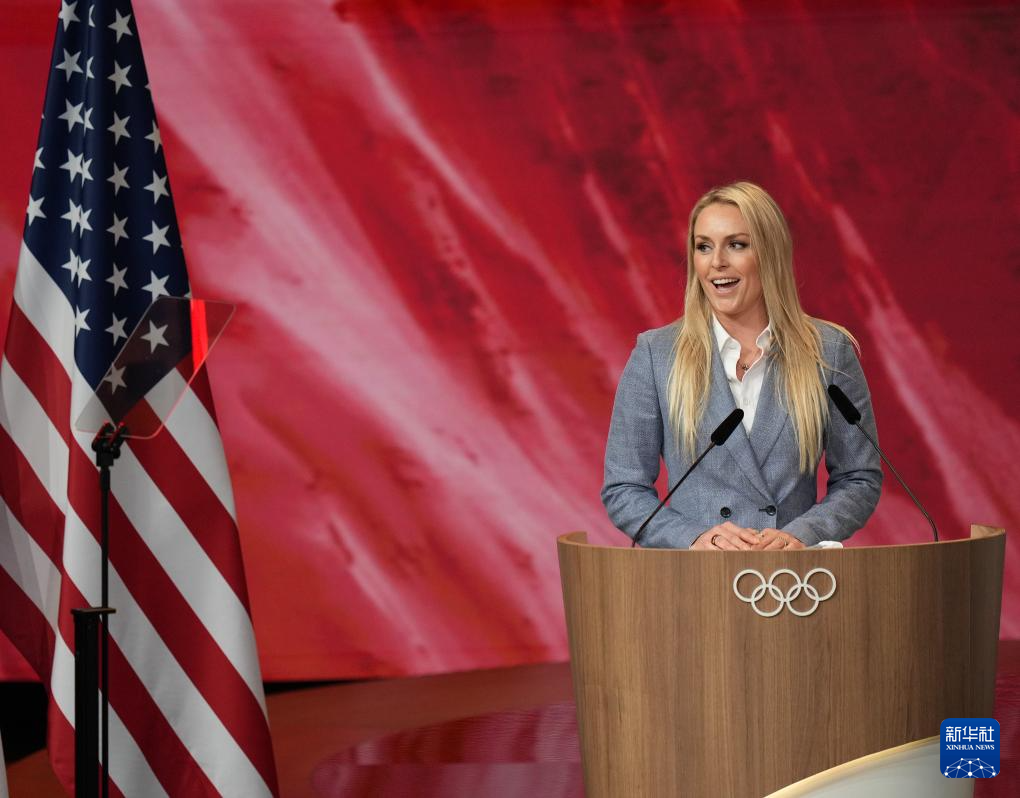 7月24日,美国前高山滑雪运动员林赛·冯恩在国际奥委会第142次全会上发言。新华社记者 孙非 摄