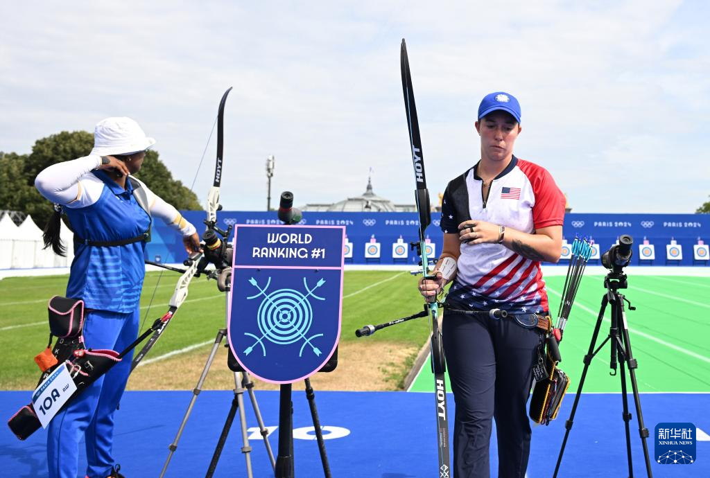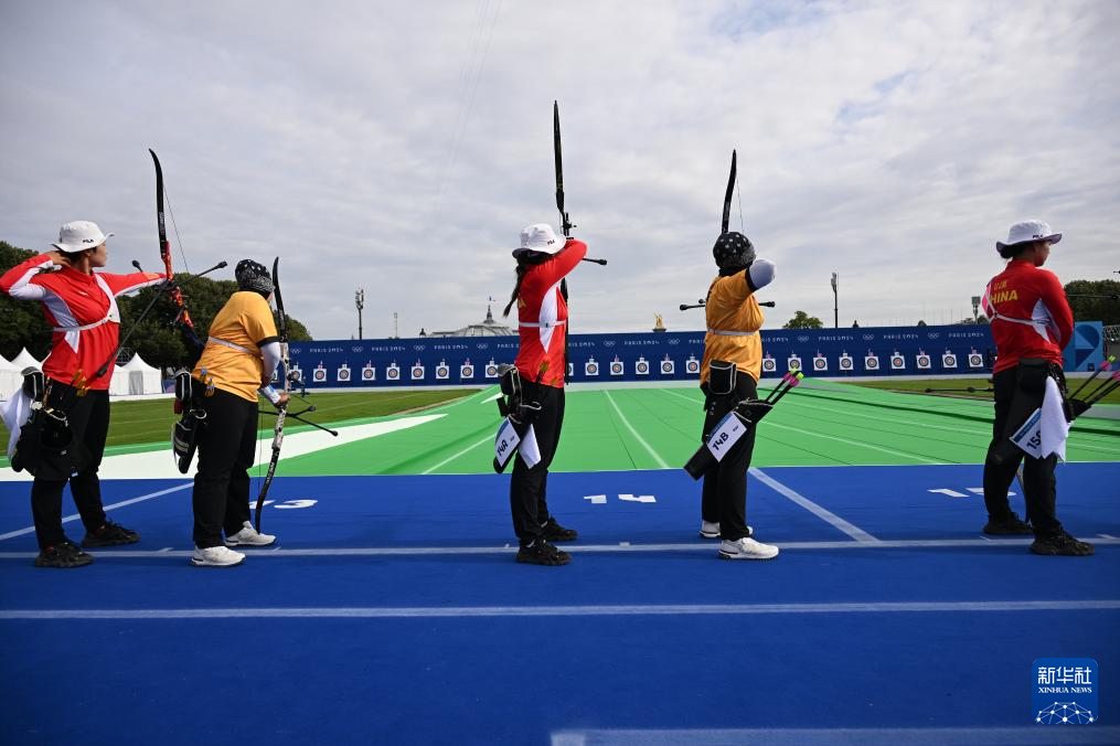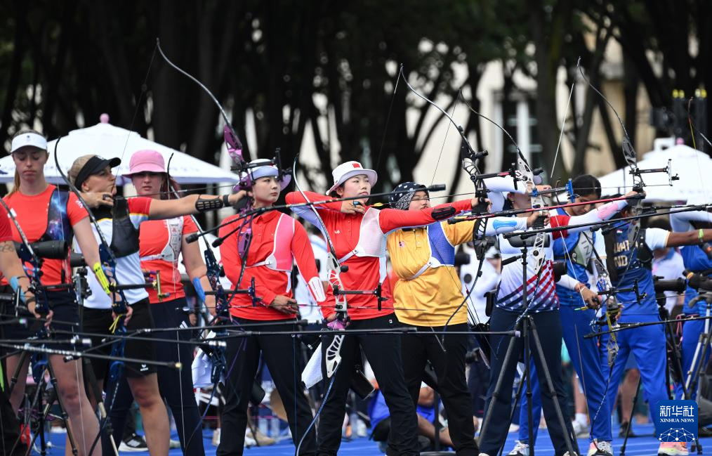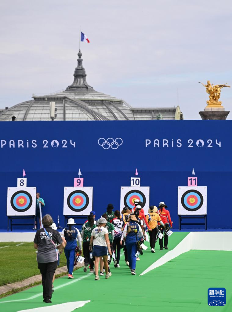 当日,巴黎奥运会射箭女子个人排位赛在巴黎荣军院举行。