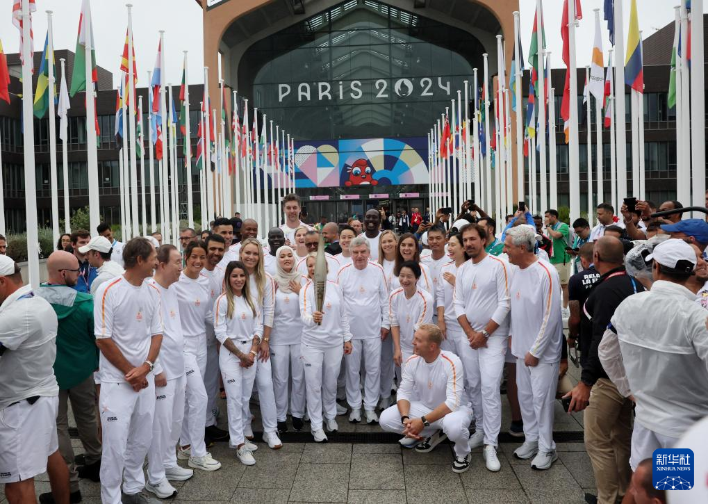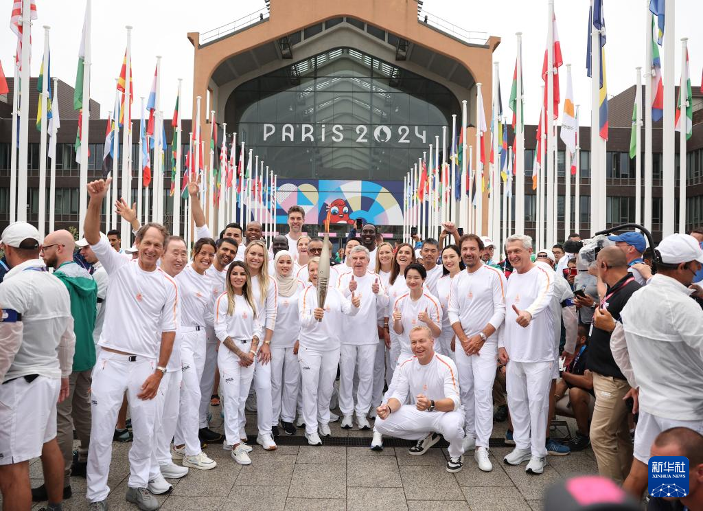 当日,2024年巴黎奥运会火炬在奥运村内传递。