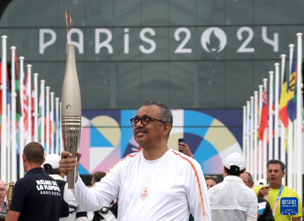 7月26日,世界卫生组织总干事谭德塞在火炬传递中。新华社发(POOL照片/利娅·米利斯)