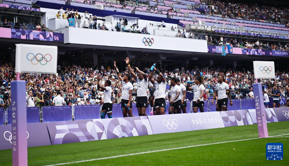 7月25日,斐济队球员在获胜后向观众致意。新华社记者 陶希夷 摄