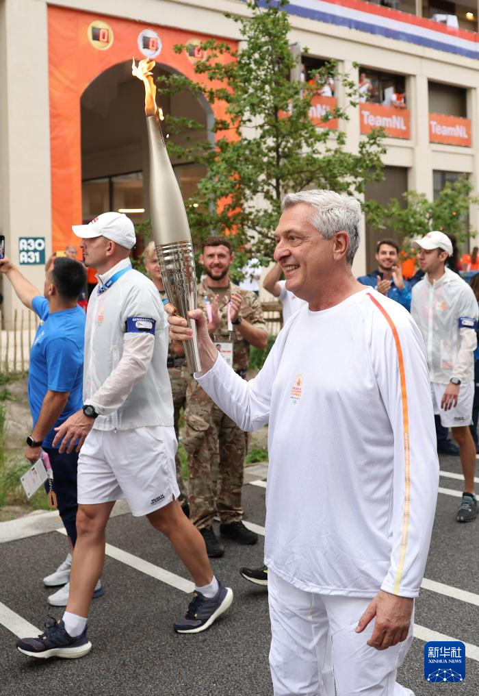 7月26日,国际奥委会运动员委员会主席泰尔霍在火炬传递中。新华社记者 贾浩成 摄