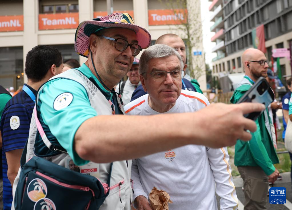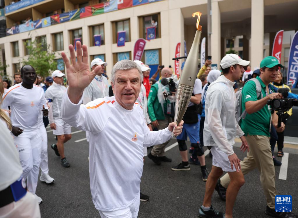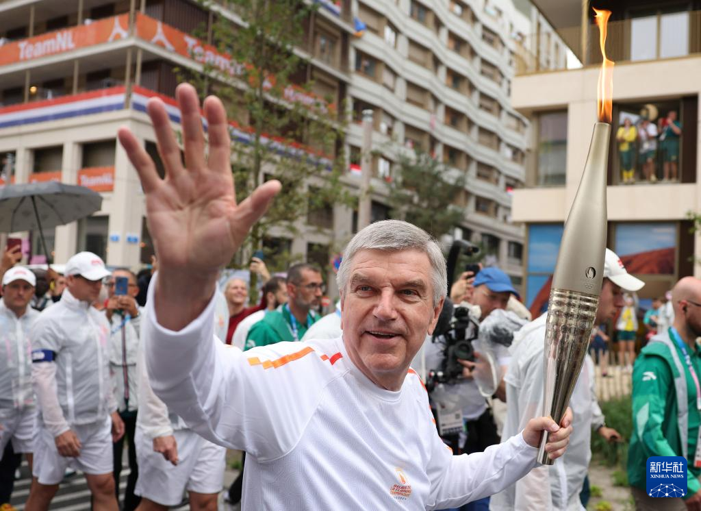 7月26日,国际奥委会主席巴赫在火炬传递中。新华社记者 贾浩成 摄