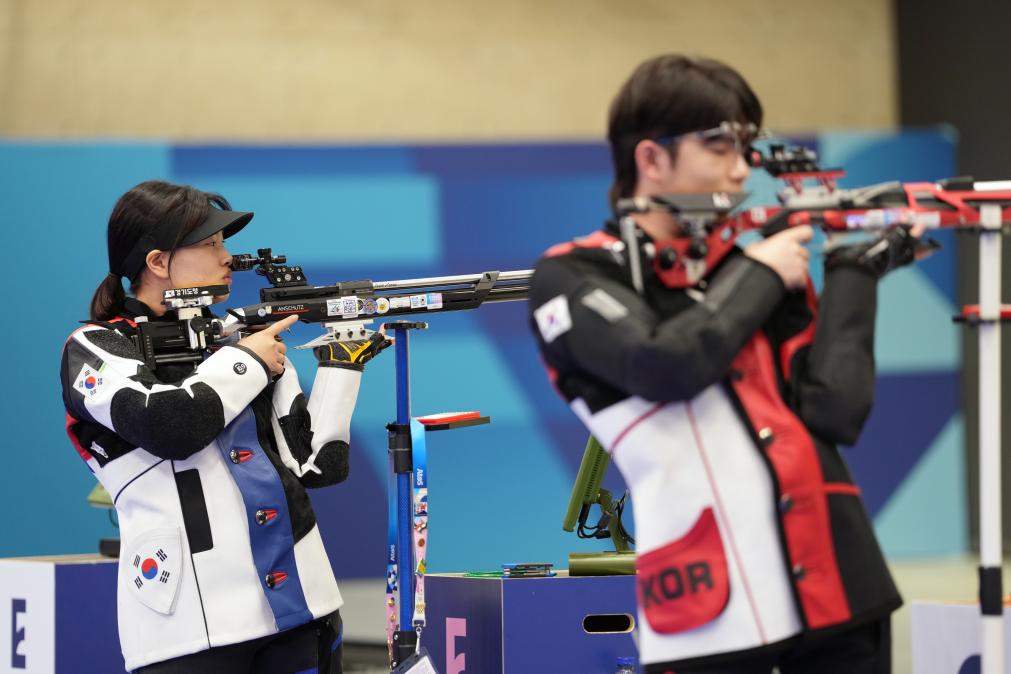 当日,巴黎奥运会射击10米气步枪混合团体资格赛在法国沙托鲁举行。