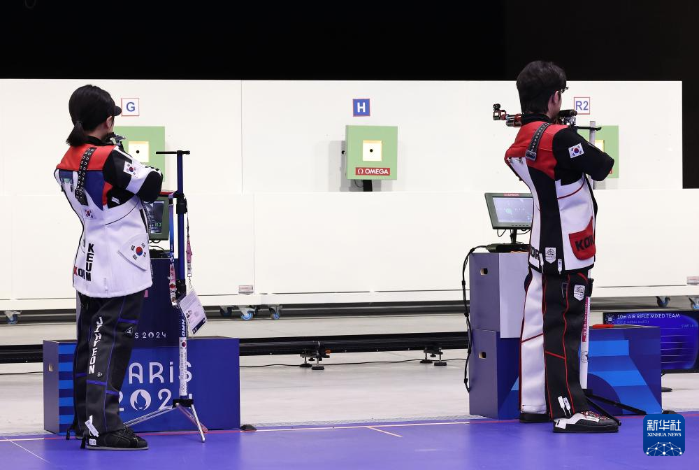 当日,巴黎奥运会射击10米气步枪混合团体比赛在法国沙托鲁举行。