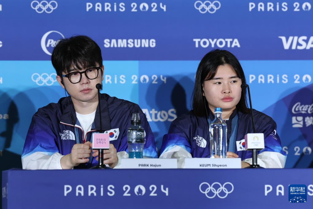 7月27日,亚军韩国组合金智贤/朴是晙(右)在赛后新闻发布会上。新华社记者 张帆 摄