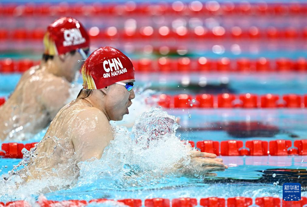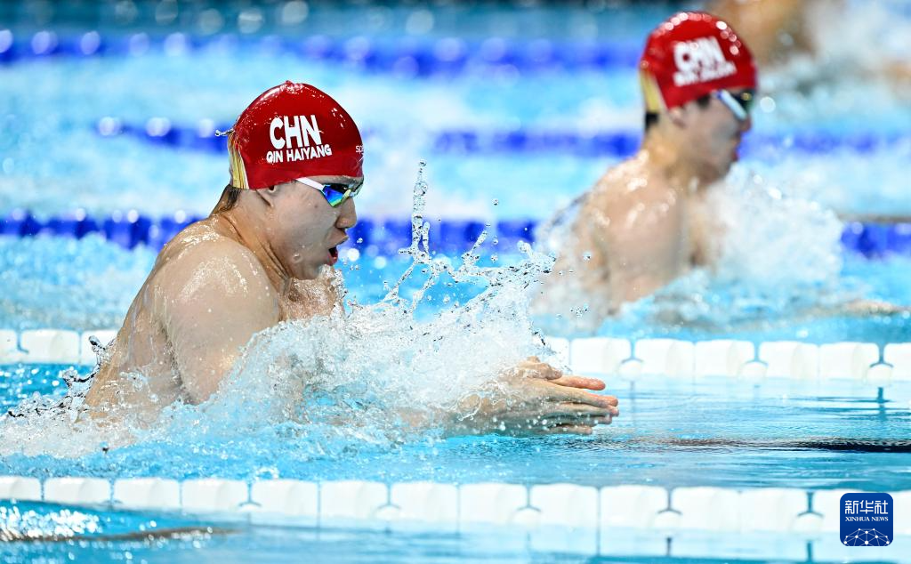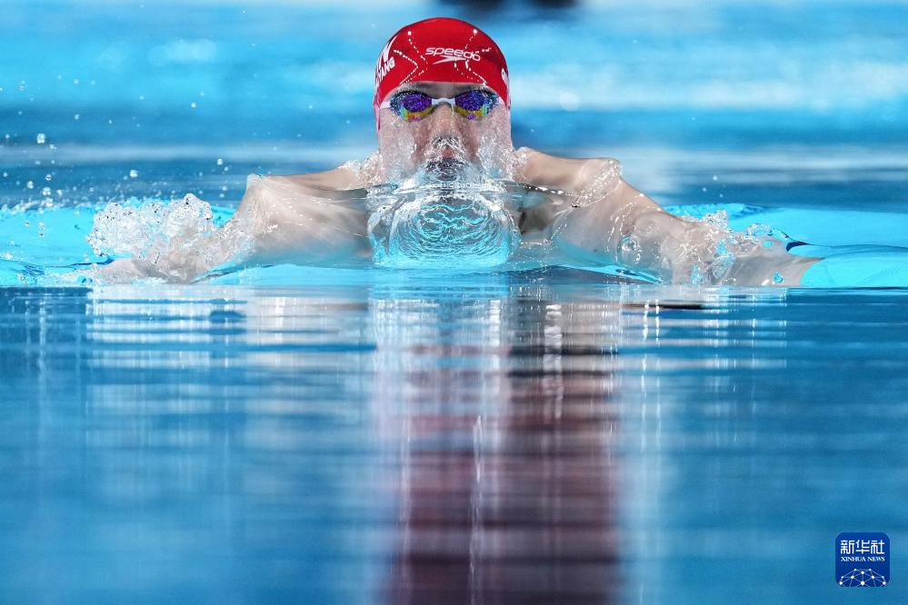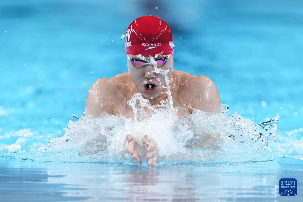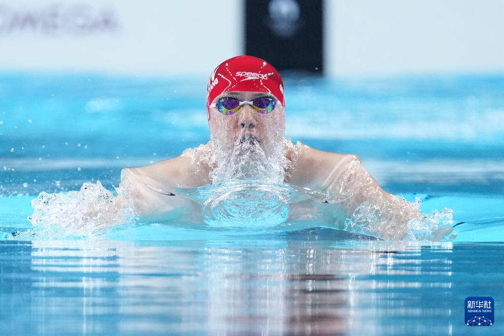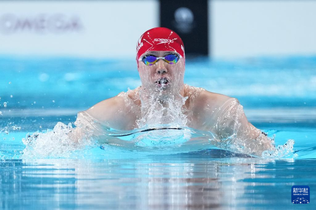 7月27日,中国选手覃海洋在男子100米蛙泳预赛中,他以59秒58的成绩晋级半决赛。新华社记者 杜宇 摄