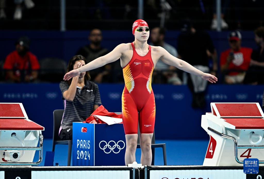 7月27日,中国选手李冰洁在女子400米自由泳预赛前,她以4分03秒96的成绩位列第九。新华社记者 杜宇 摄