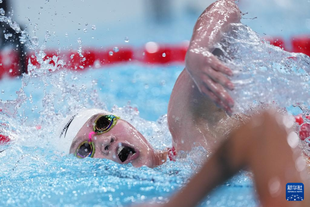 7月27日,中国选手李冰洁在女子400米自由泳预赛中,她以4分03秒96的成绩位列第九。新华社记者 杜宇 摄