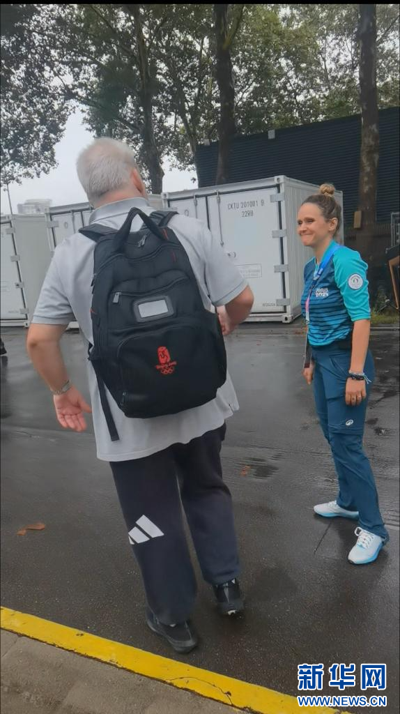 每逢大型体育赛事,换“pin”(徽章)都是其中必不可少的环节,本届巴黎奥运会亦是如此。在采访区,一位志愿者满意地展示着自己刚刚换来的北京奥运会徽章。