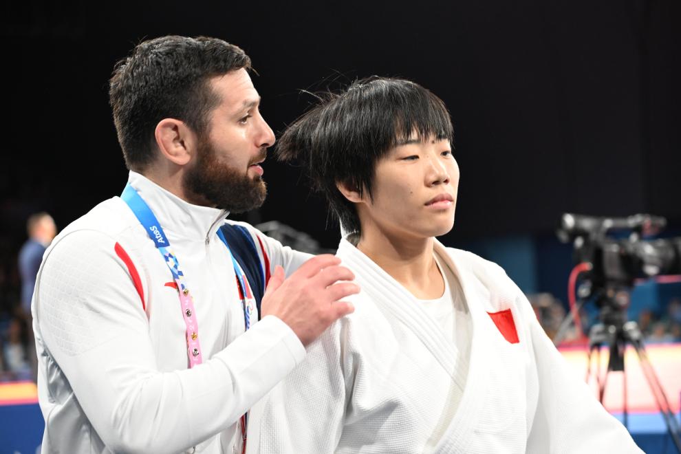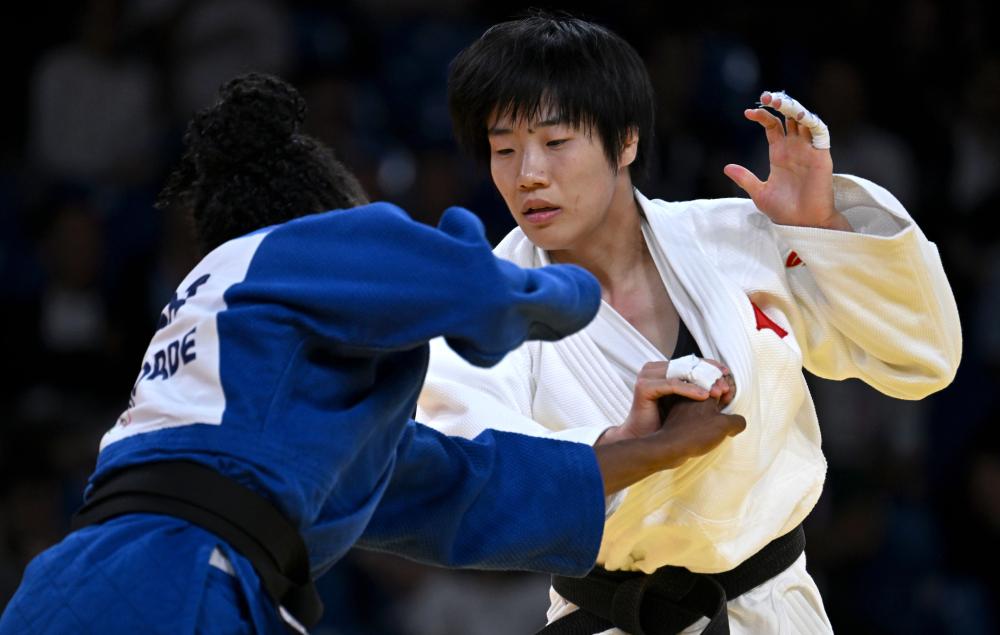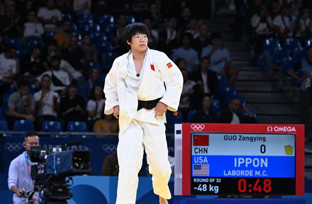 27日,巴黎奥运会柔道比赛在巴黎战神广场竞技场拉开大幕。在超过900名观众的注视与欢呼中,郭宗英登上赛场,她的对手是美国选手拉波尔德。