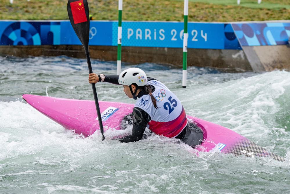 7月27日,中国选手李诗婷在女子单人皮艇预赛中。新华社记者 孙非 摄