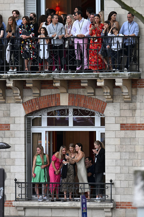 在塞纳河边的一些建筑里,不少市民透过阳台和窗户向河上观望,我边拿起相机拍摄了离自己最近的一栋建筑最顶层的窗台,那里聚集了一些法国民众,聊天、观看开幕式。在等待代表团游船穿过的间隙,我发现最顶层下面的窗台也聚集了时尚的法国女郎,她们穿着裙装,拿着手机,时而拍摄河面,时而自拍,还会聚在一起翻看拍摄的照片,这一幕深深打动了我,上下两层窗,不同的人群,呈现出不同的法式风情,仿佛看到了一部法国电影,我毫不犹豫地聚起相机按下快门。