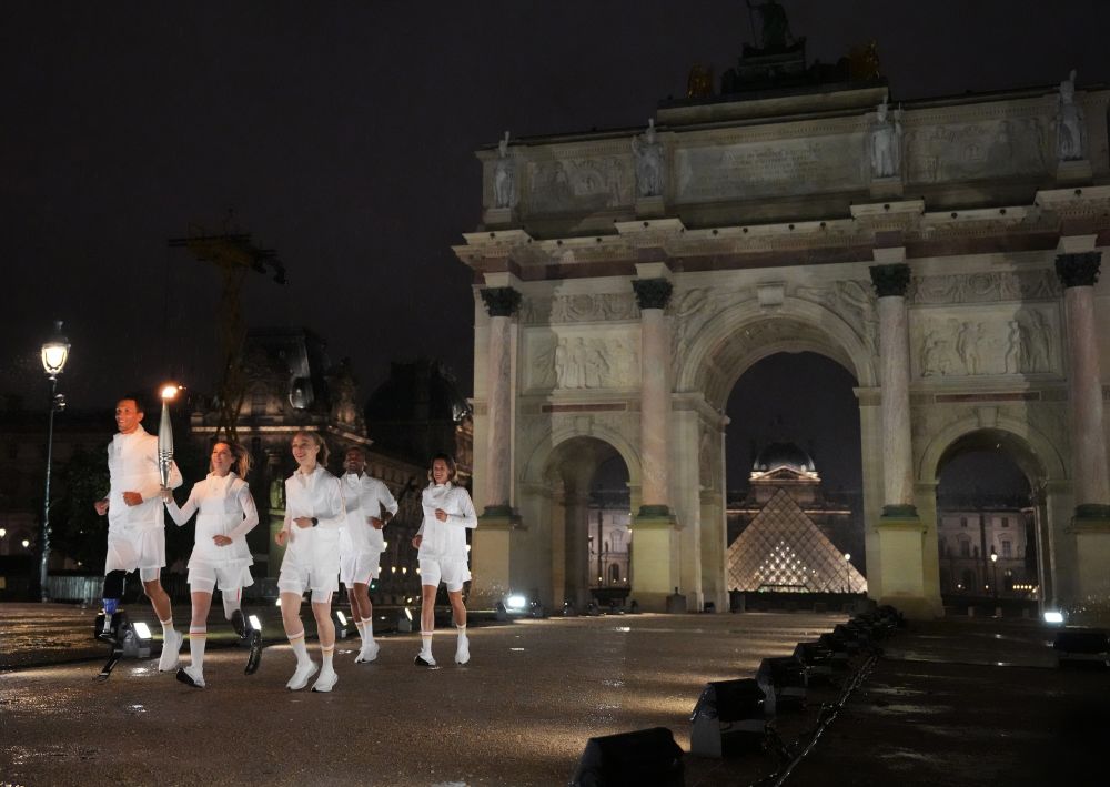 当火炬手们沿着亮灯的步道穿过卡鲁塞尔凯旋门,我按下快门,定格这个体育与文化交融的瞬间。