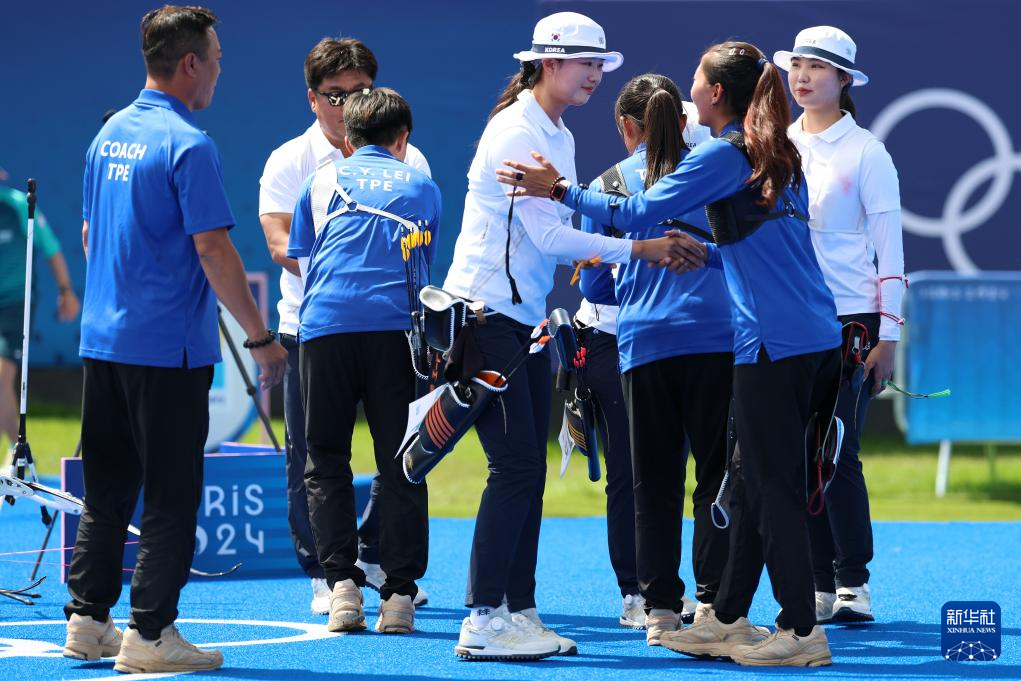 当日,在巴黎荣军院举行的巴黎奥运会射箭女子团体四分之一决赛中,中国台北队2比6不敌韩国队,无缘半决赛。