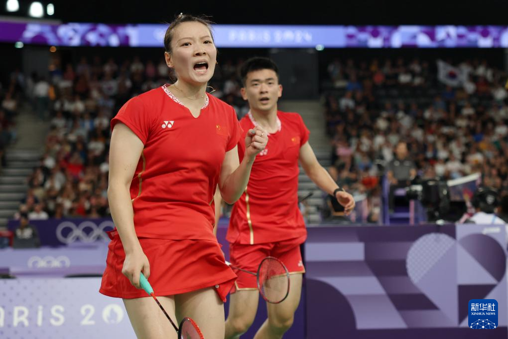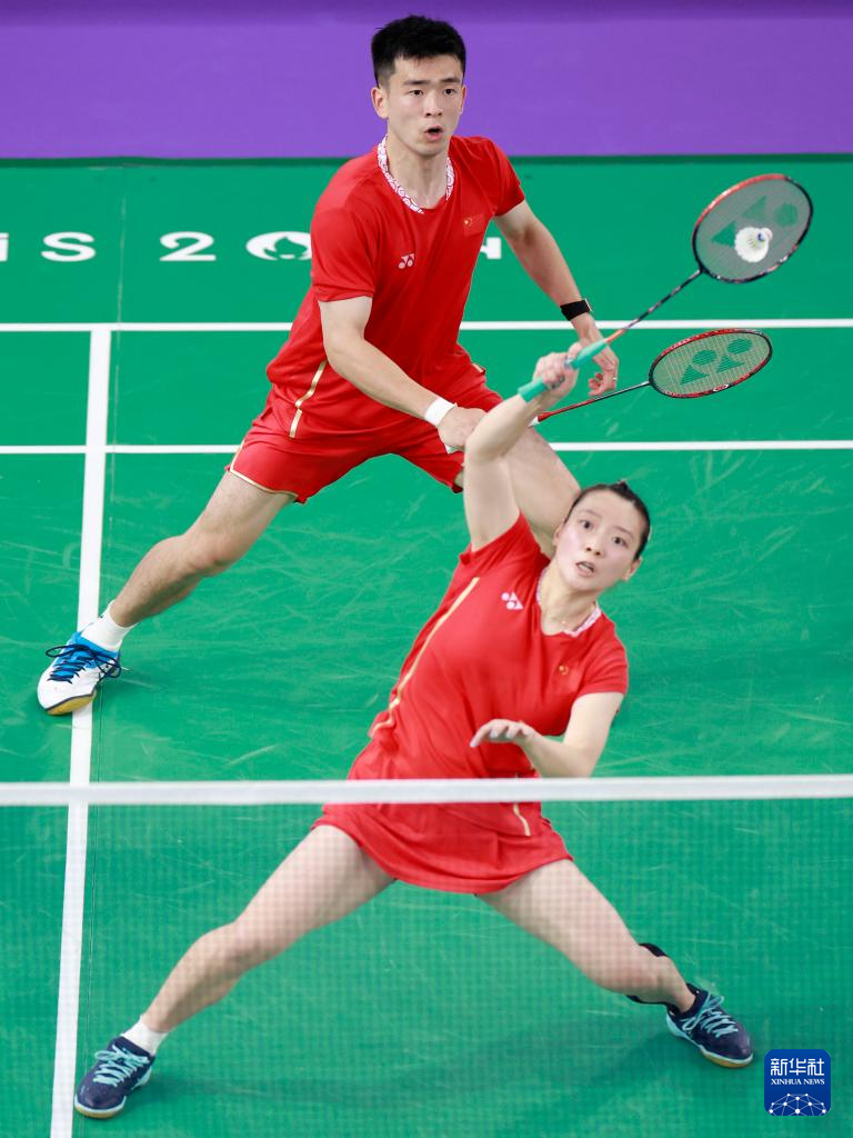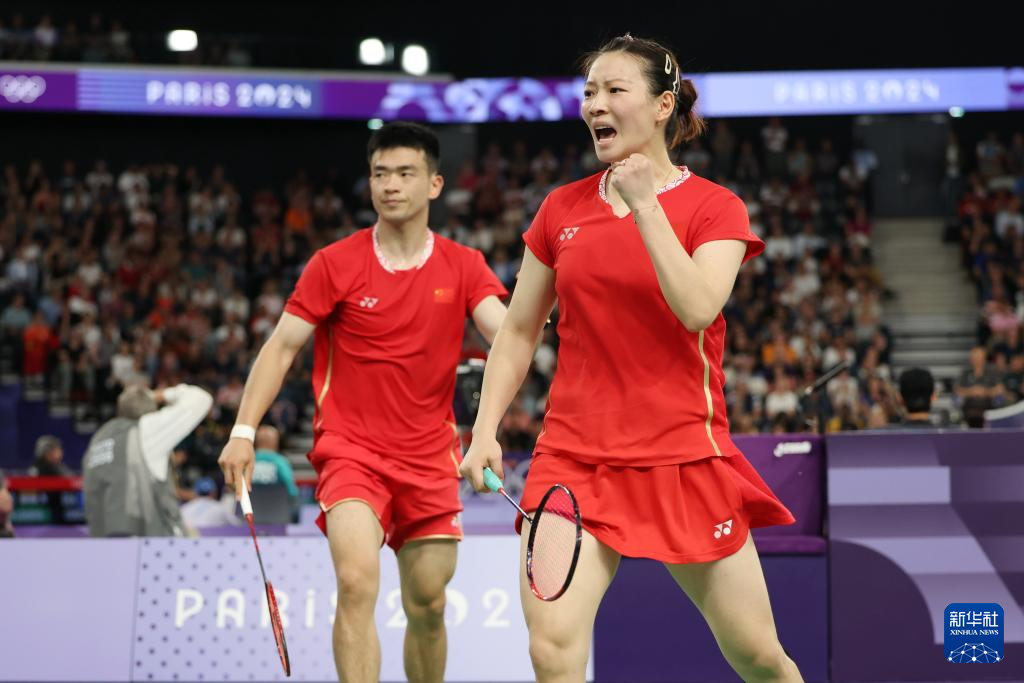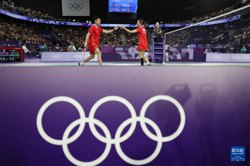 当日,在巴黎奥运会羽毛球项目混合双打小组赛A组比赛中,中国组合郑思维/黄雅琼2比0战胜法国组合吉凯尔/德尔吕。